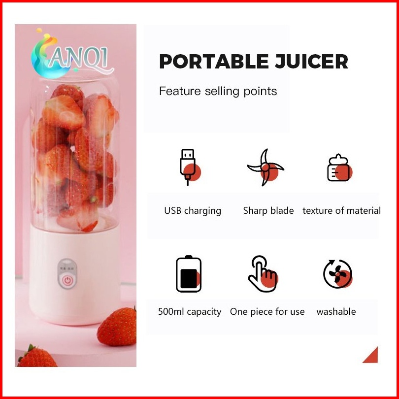 Anqi Shop Blender Juicer Portable Usb 500ml Mini Juicer Multifungsi Pisau Kaca Menebal Blender Jus Mini Vs-1853
