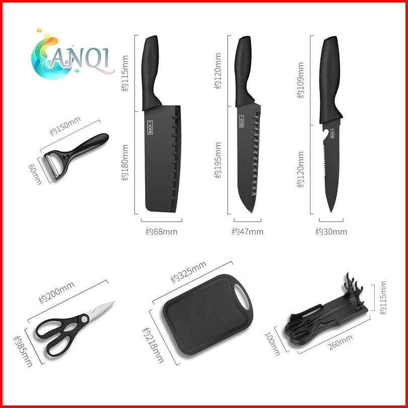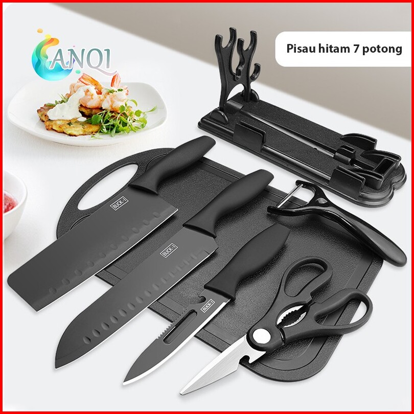 Anqi Pisau Set 7 In 1 Talenan Kitchen Knife Set Pisau Dapur Set Potong Daging Dan Buah Vs-1820