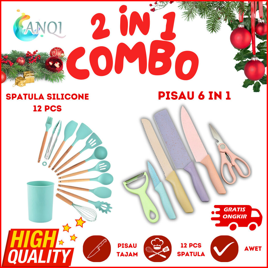 Anqi Shop Paket Tahun Baru 1 Set Pisau Makaroni 1 Set Spatula Silicone 12in1
