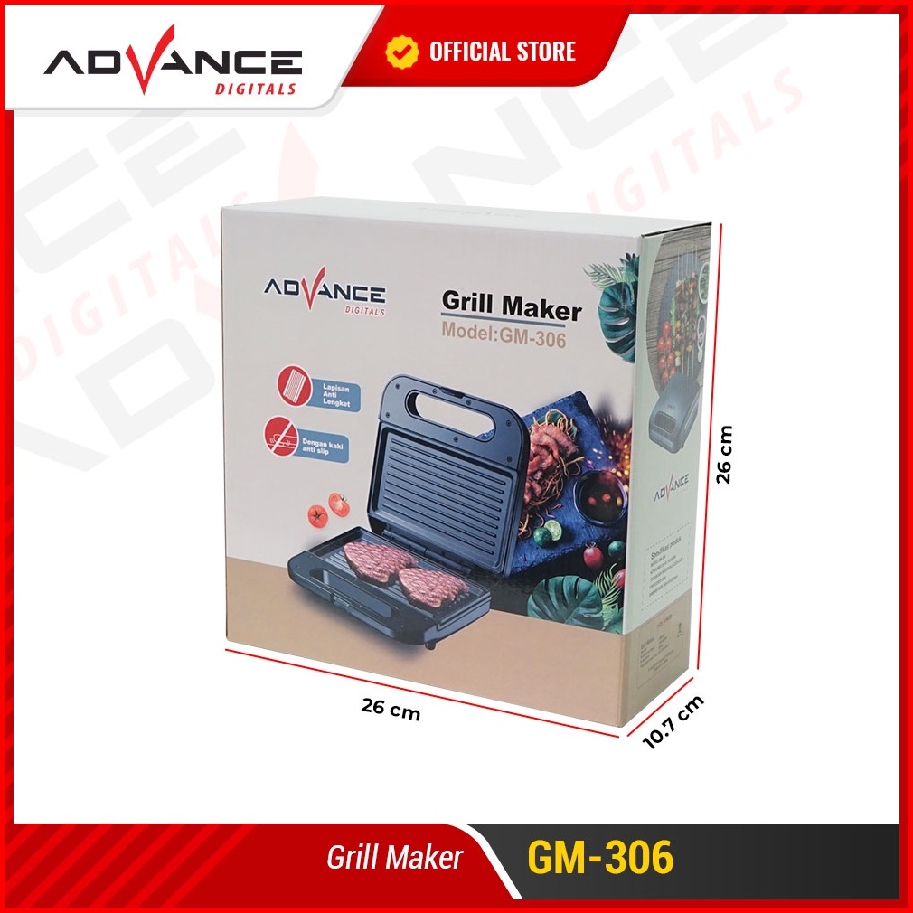 Advance Grill Maker Gm-306 Alat Pemanggang Daging Steak Elektrik Portable Hemat Listrik Garansi 1 Tahun