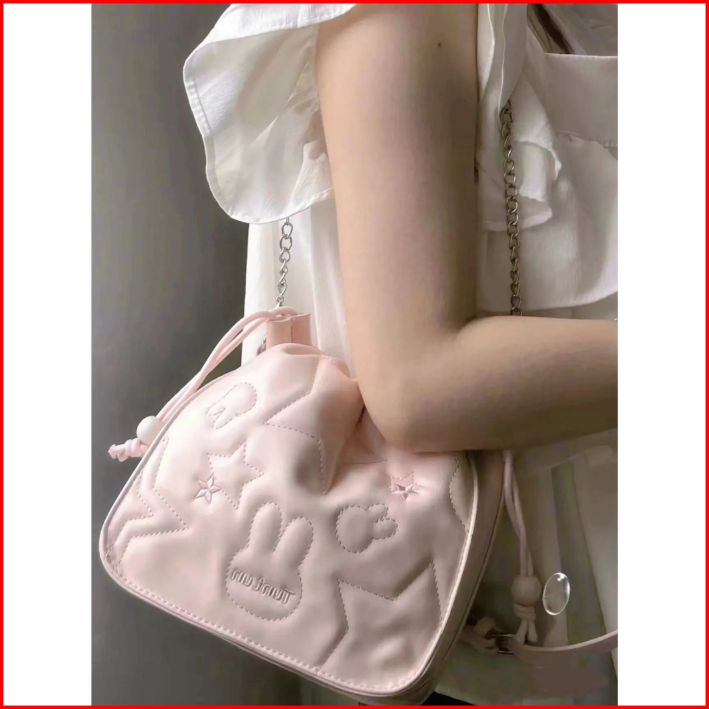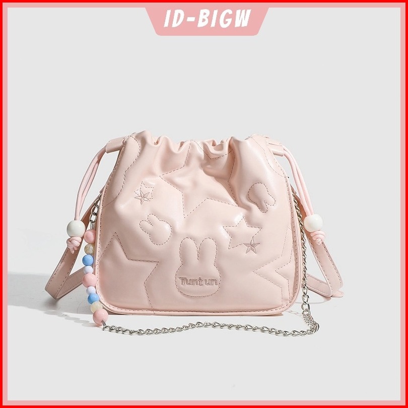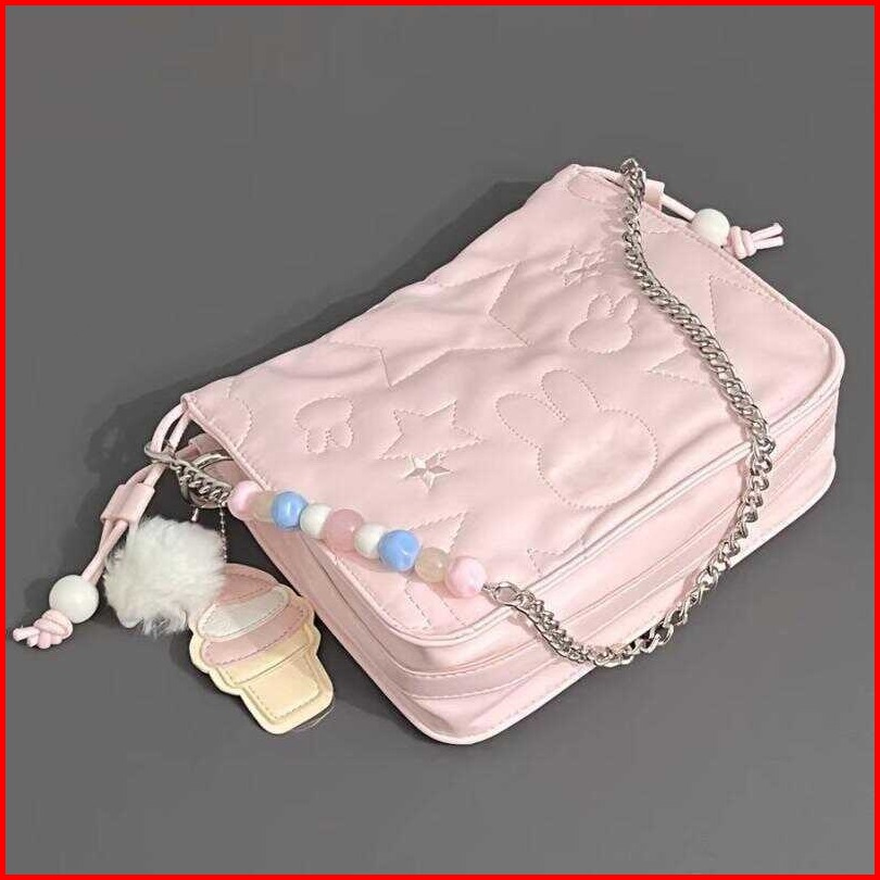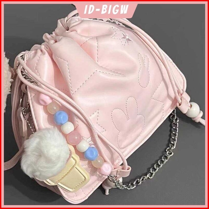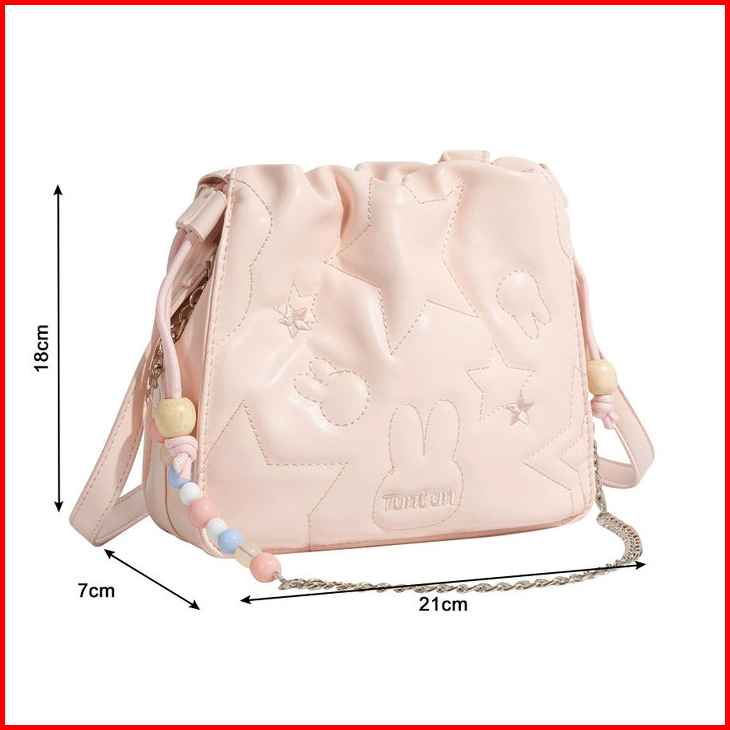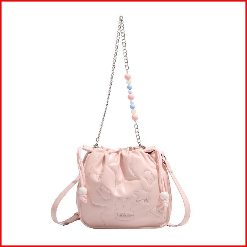 Tas Selempang Bahu Tunggal Baru Untuk Wanita Tas Rantai Serut Fashion Manis Manik-manik Desain Ceruk Tas Selempang Ranta