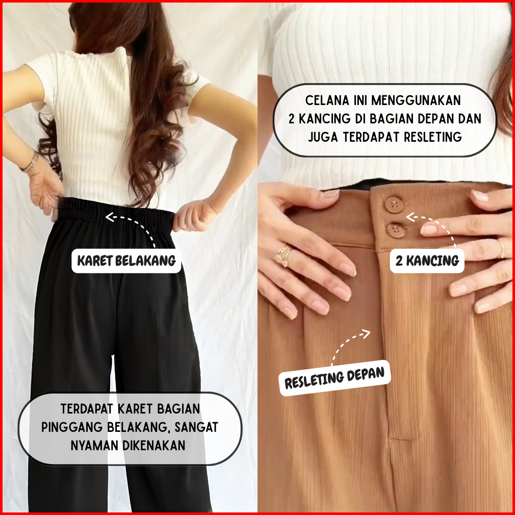 Celana Kulot Wanita Knit Jennie Pants Higwaist 2 Kancing Pengait Terbaru Anti Kusut