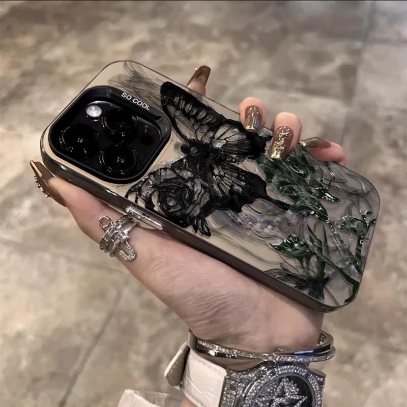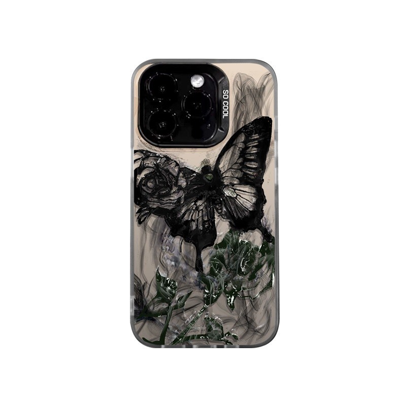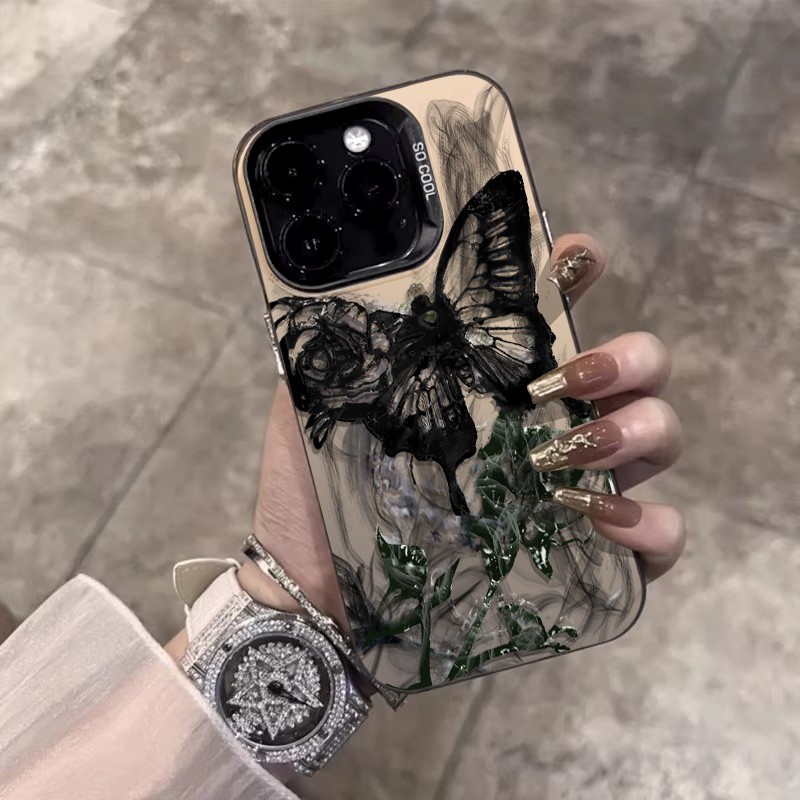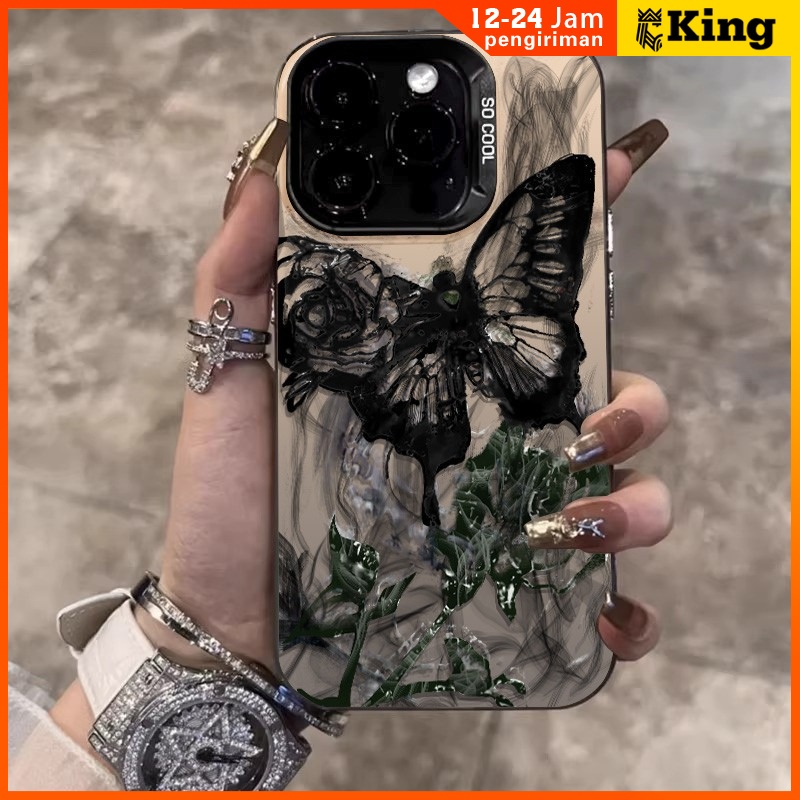 [Star] Kupu-kupu hitam hijau case iPhone seri Kompatibel untuk iPhone 11 12 13 14 15 pro promax casing untuk case hp iPh