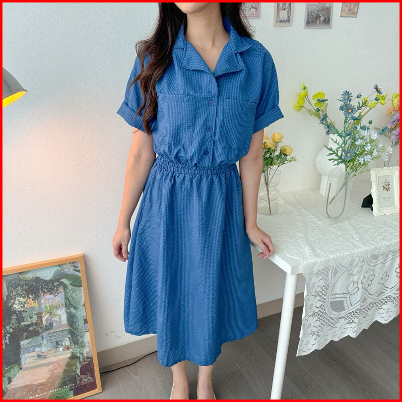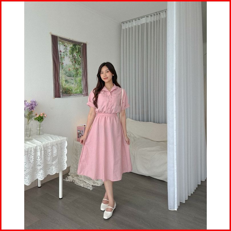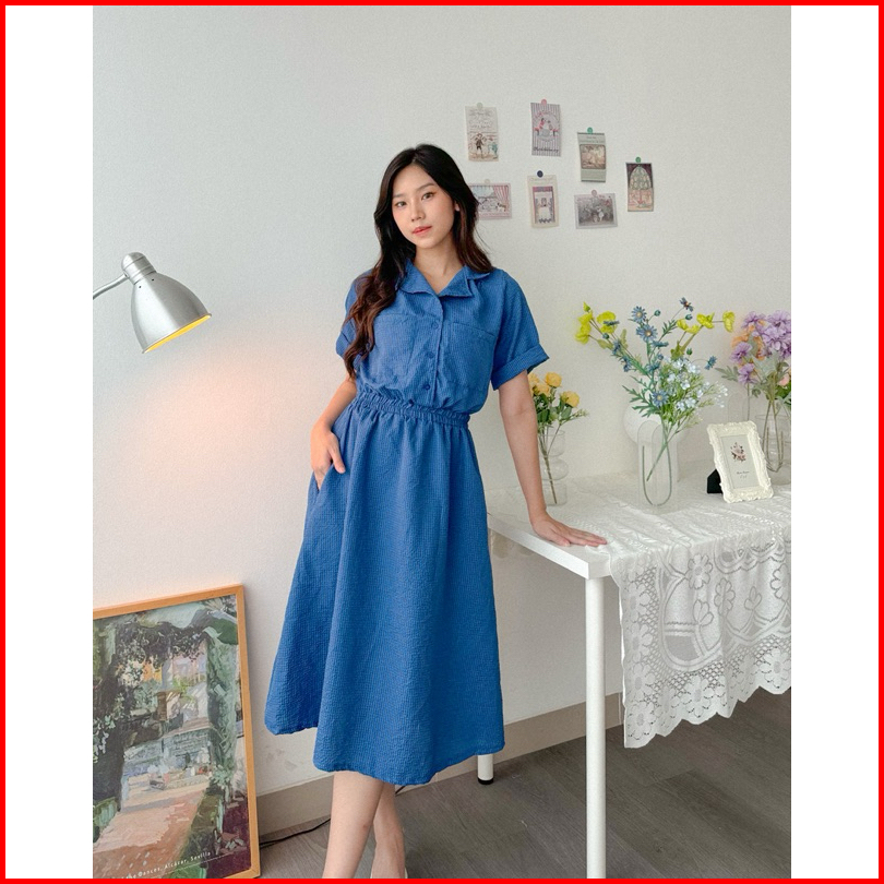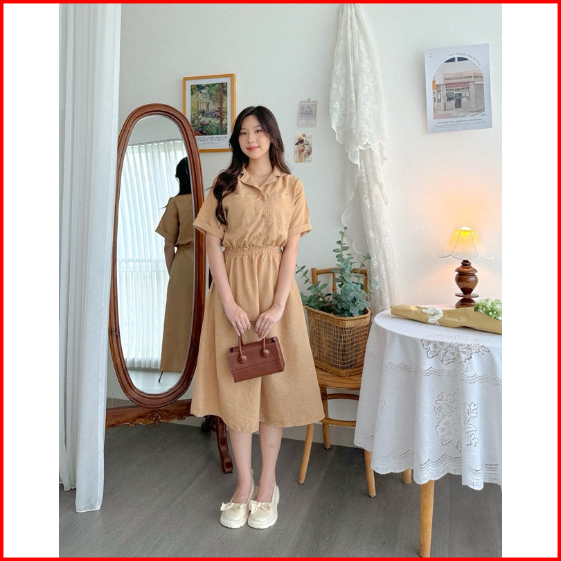Kanon - Kanata Basic Shirt Crinkle Dress - Dress Midi Kemeja Motif Crinkle