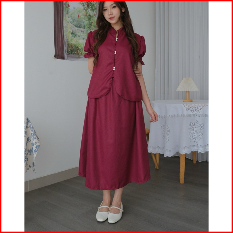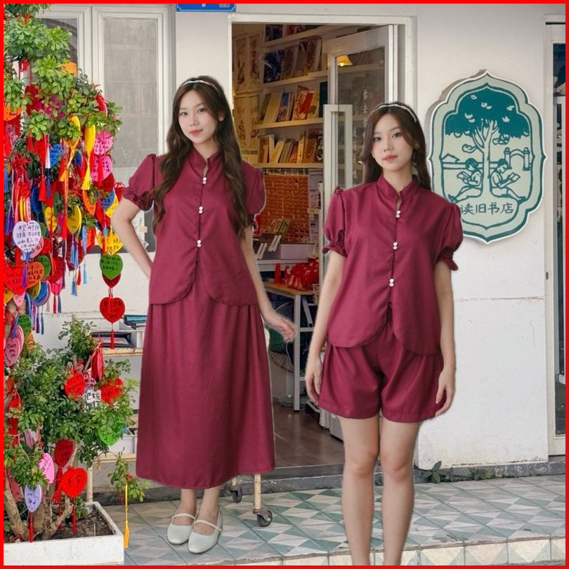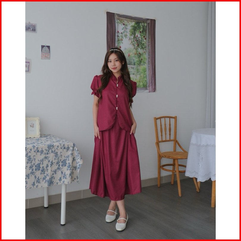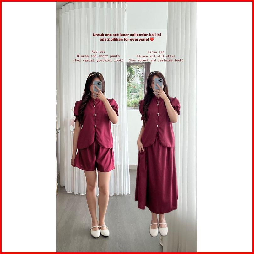 Kanon - Lihua And Ruo Set - Set Wanita Baju Dan Celana Pendek Rok Midi Model Imlek