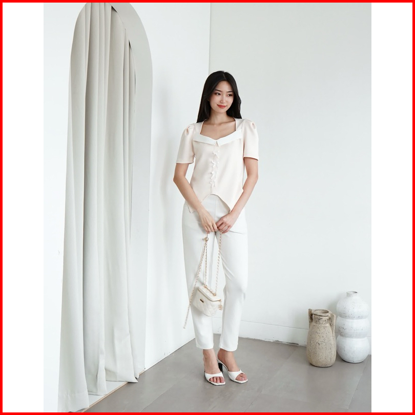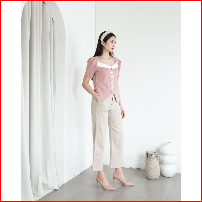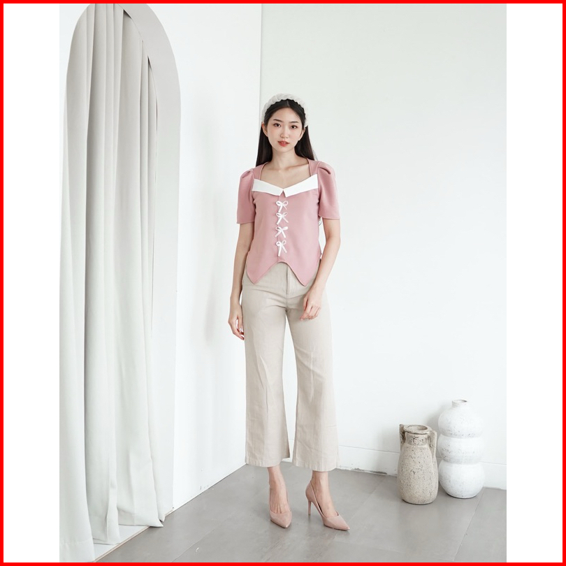 Aenor Cloth - Ellie Ribbon Bow Cute Blouse Korean Style Top Red Maroon Cream Soft Pink