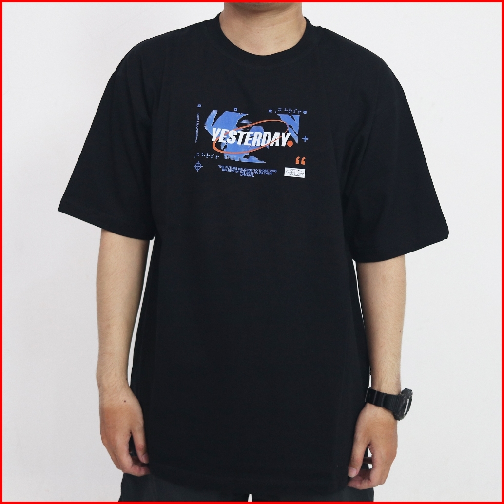 Yesterday Baju Kaos Distro Pria Original 24s T Shirt Pria Cowok Keren Hitam Ouval