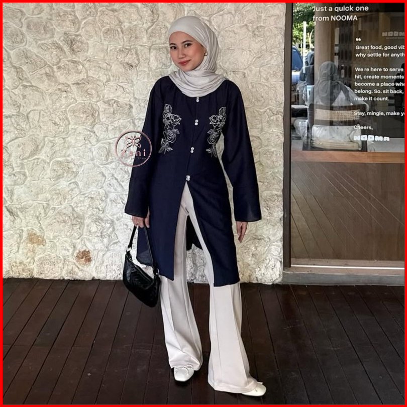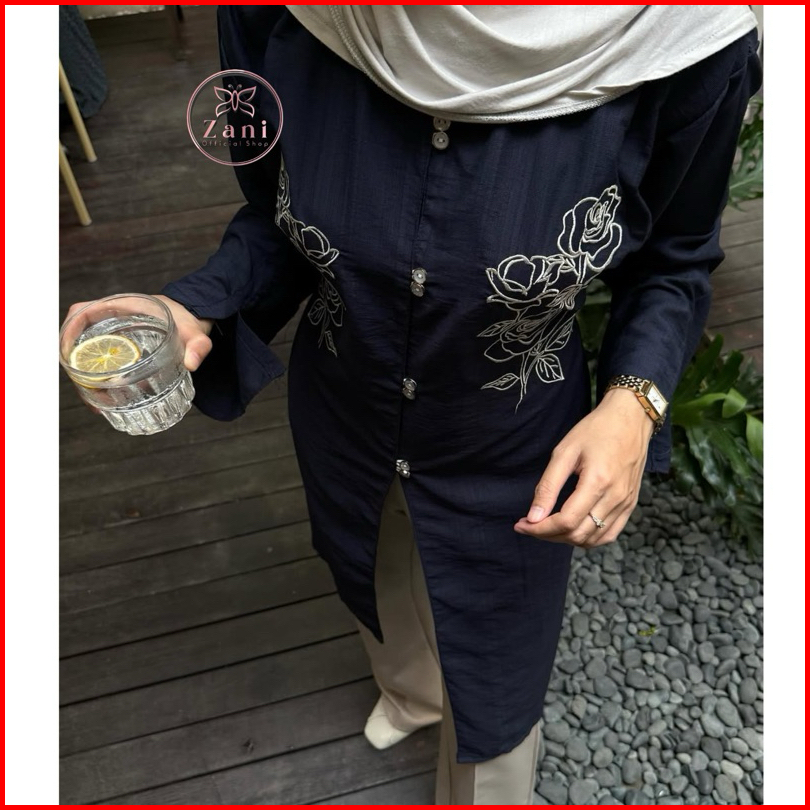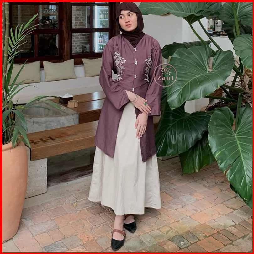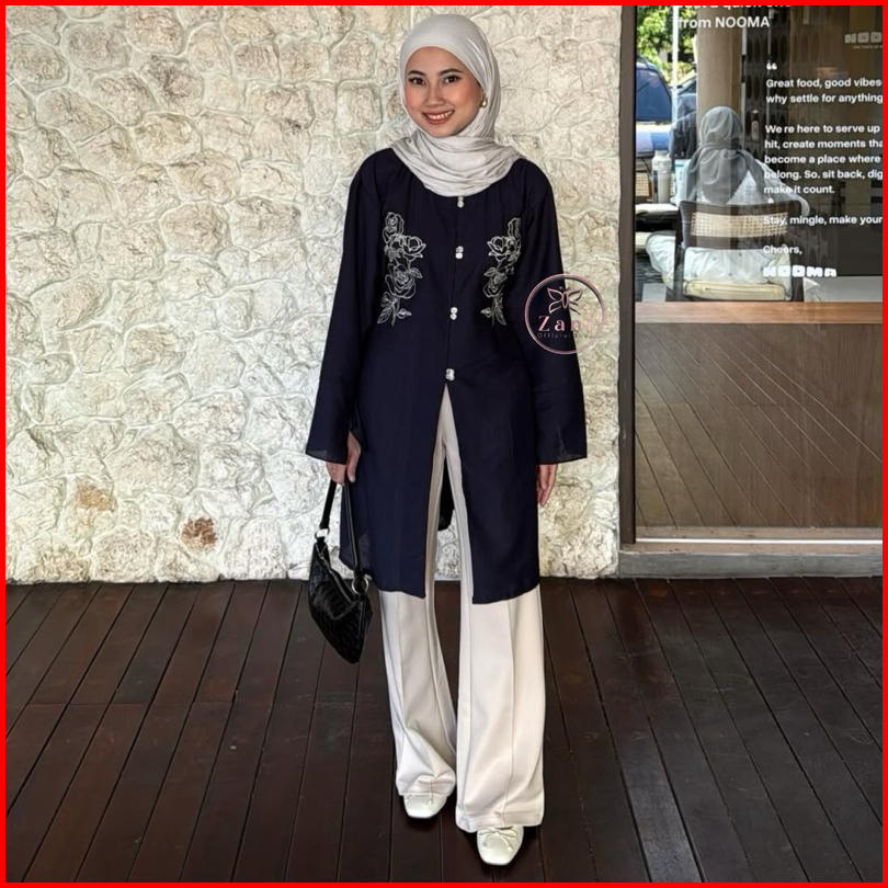 Zani - Malaya Tunik - Atasan Wanita Tunik Melayu Bordir Bunga - Tunik Lebaran - Baju Kondangan