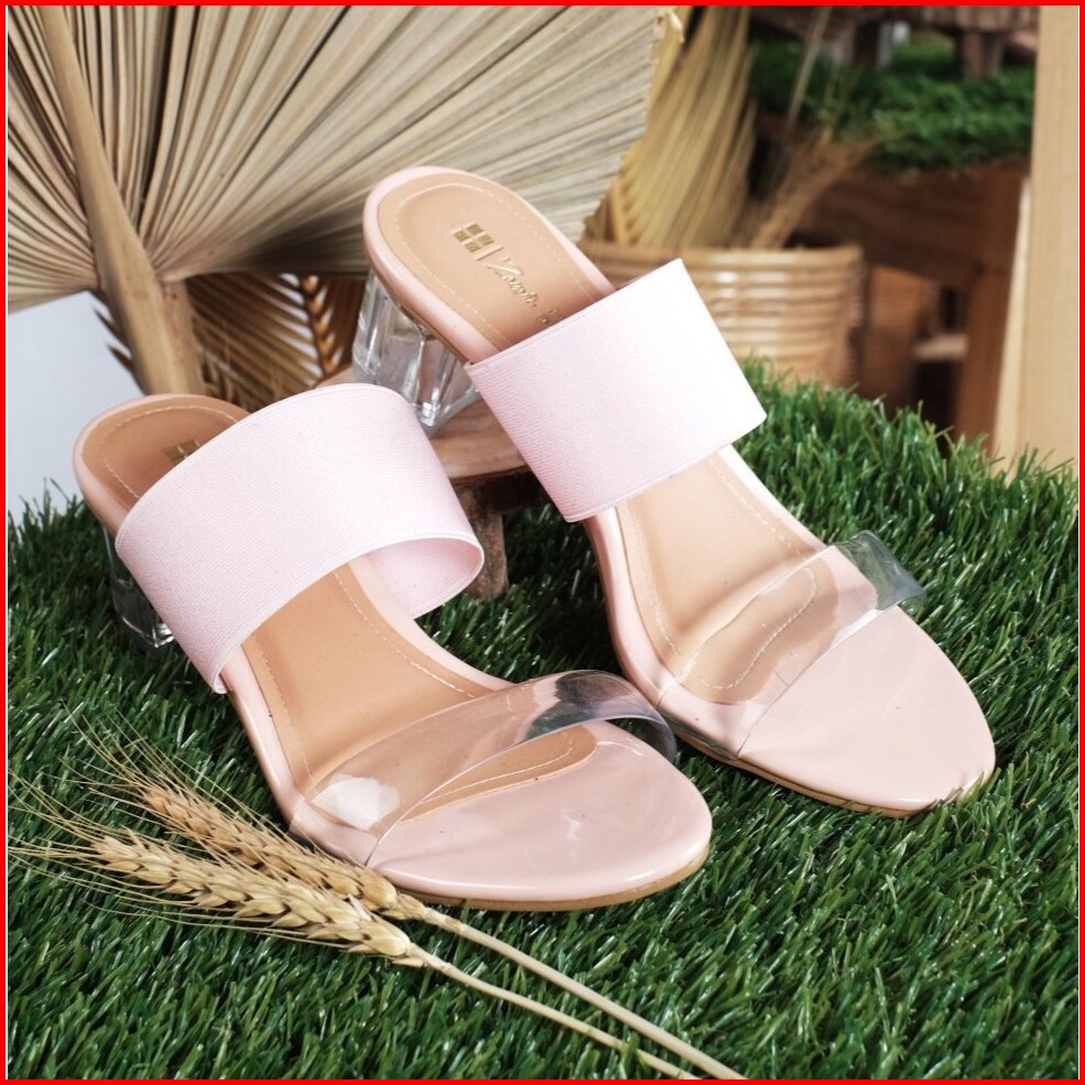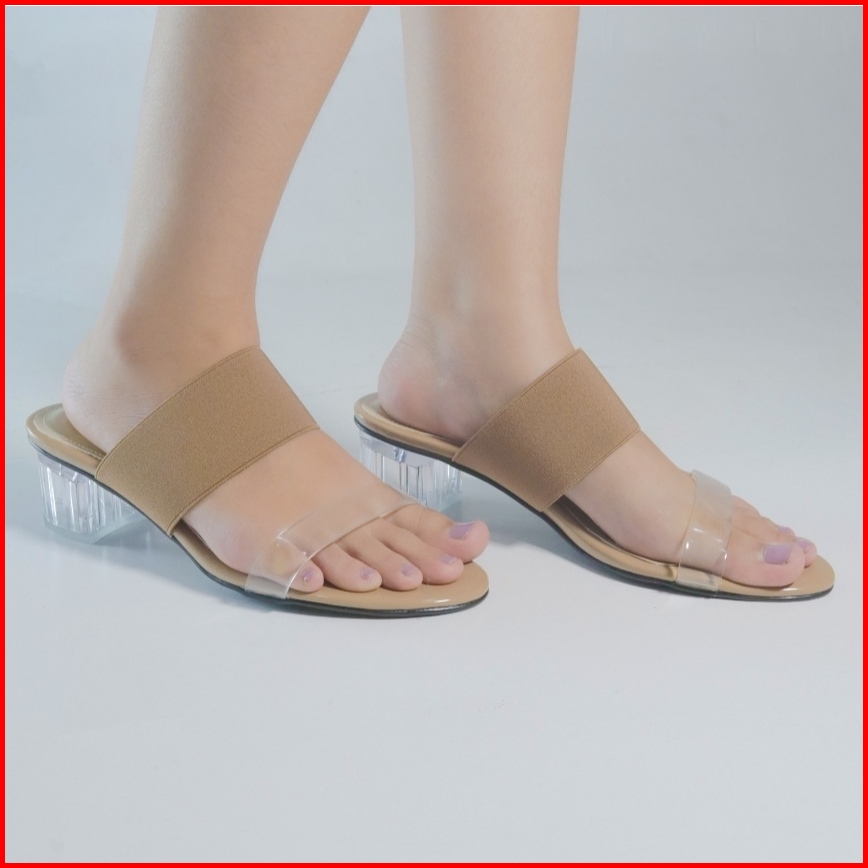 Zavatu - Sandal Wanita Hak Kaca 5cm Selop Pesta Casual Size Jumbo Ukuran 41 45 Zvt 178