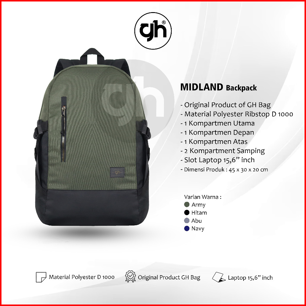 Gh-bag Tas Ransel Midland Backpack Tas Sekolah Kuliah Tas Laptop 15 6 Inch New Arrival