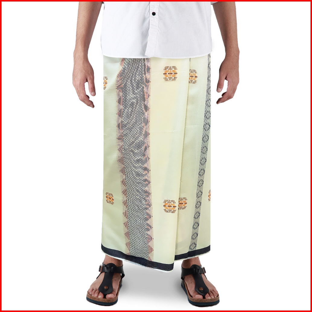 Sarung Mangga Songket Cream Kembang Orange Skt64