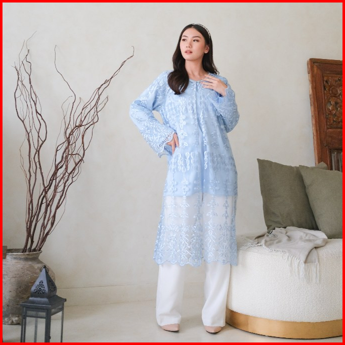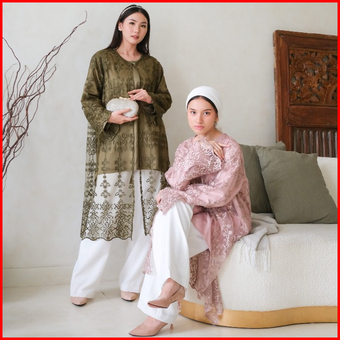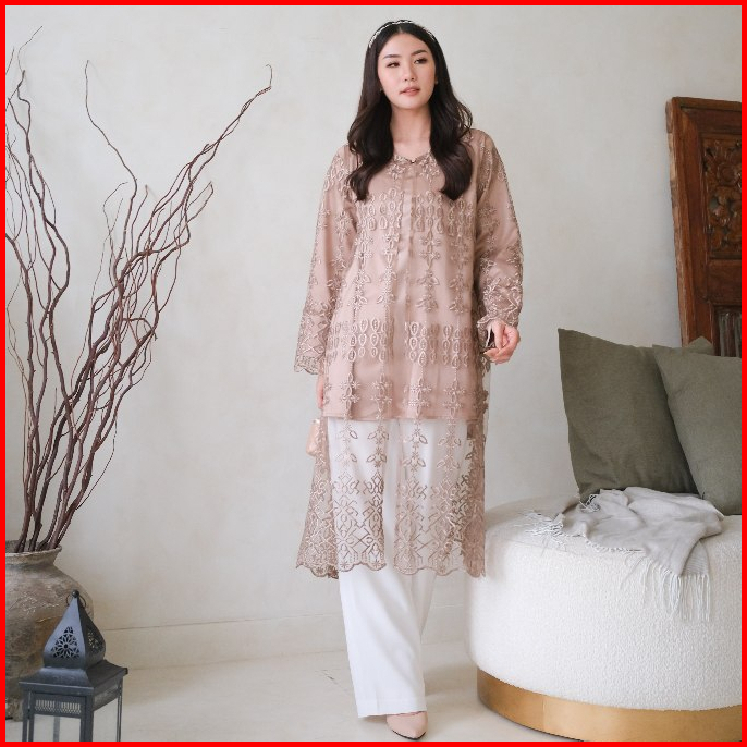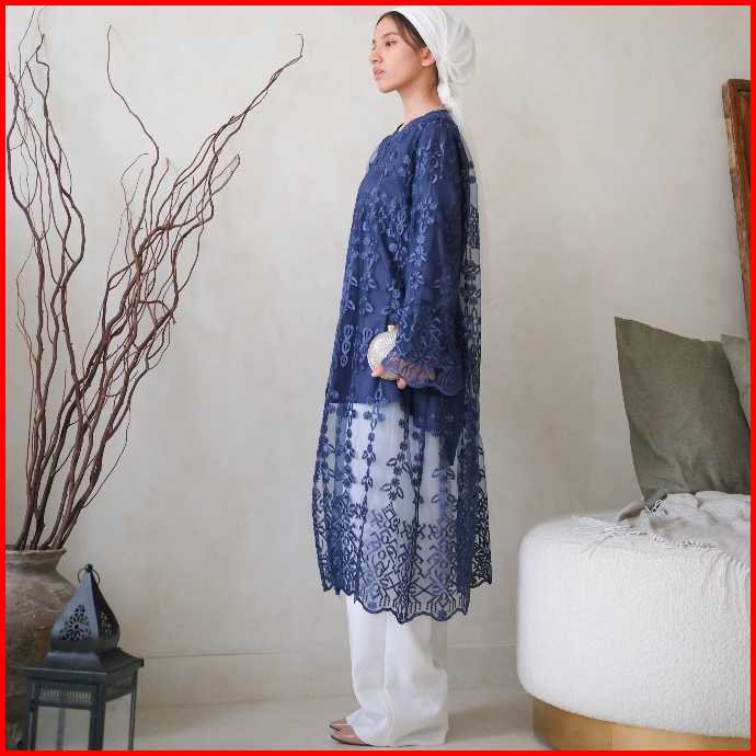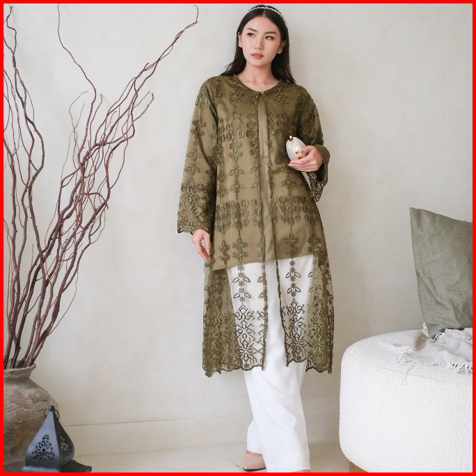 Kiyorawears - Raya Collection Syakila Brukat Tunic Outer Tunik Inner Satin Kondangan Wisuda Lamaran Blouse Tulle Wanita