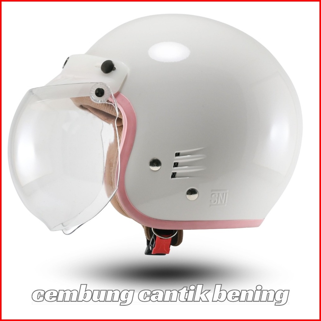 Helm Bipplast Cewek Retro Bogo Solid Luminos Wanita Kekinian Kaca Datar Sni Motorcycle