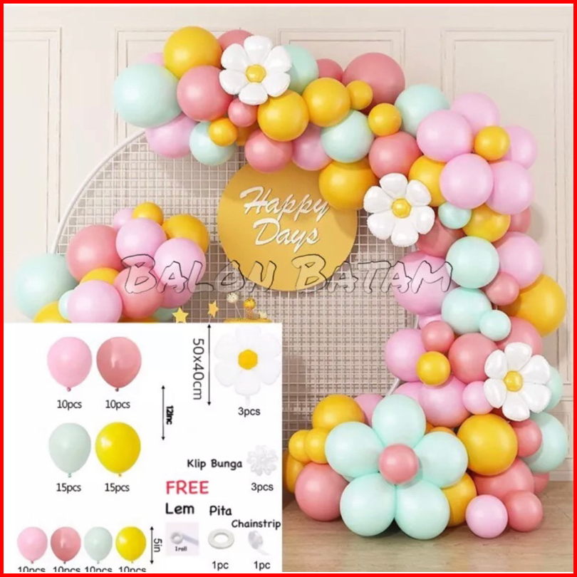 Paket Balon Backdrop Macaron Warna Warni Bunga Daisy 9859
