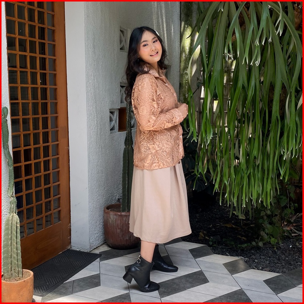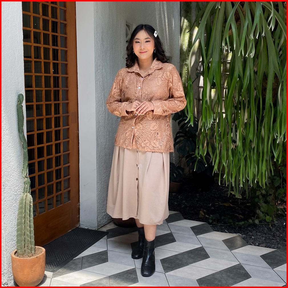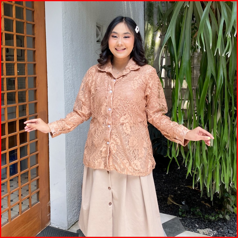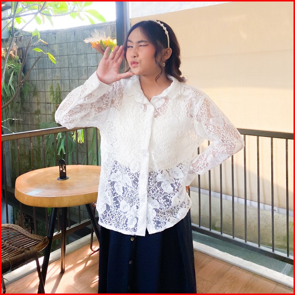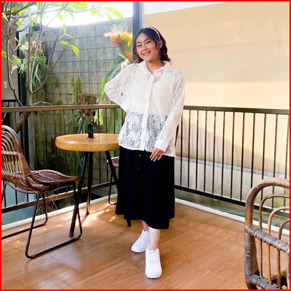 Yoenik Apparel Yujin Kemeja Brokat - Kemeja Lace Wanita - Atasan Korean Style