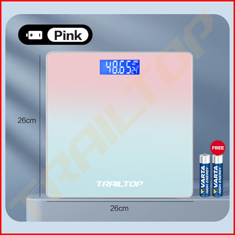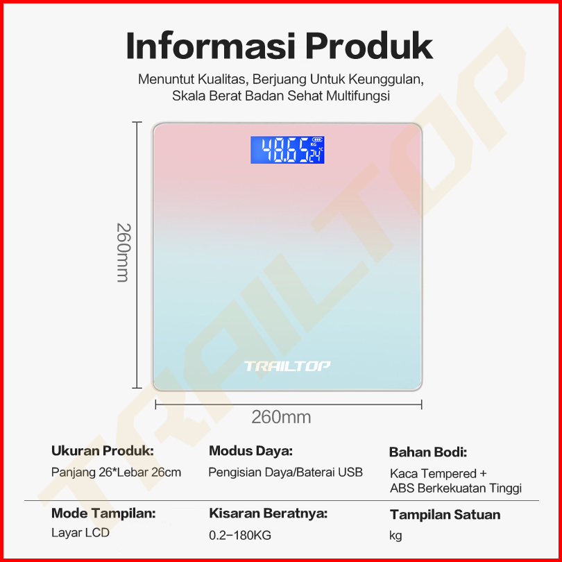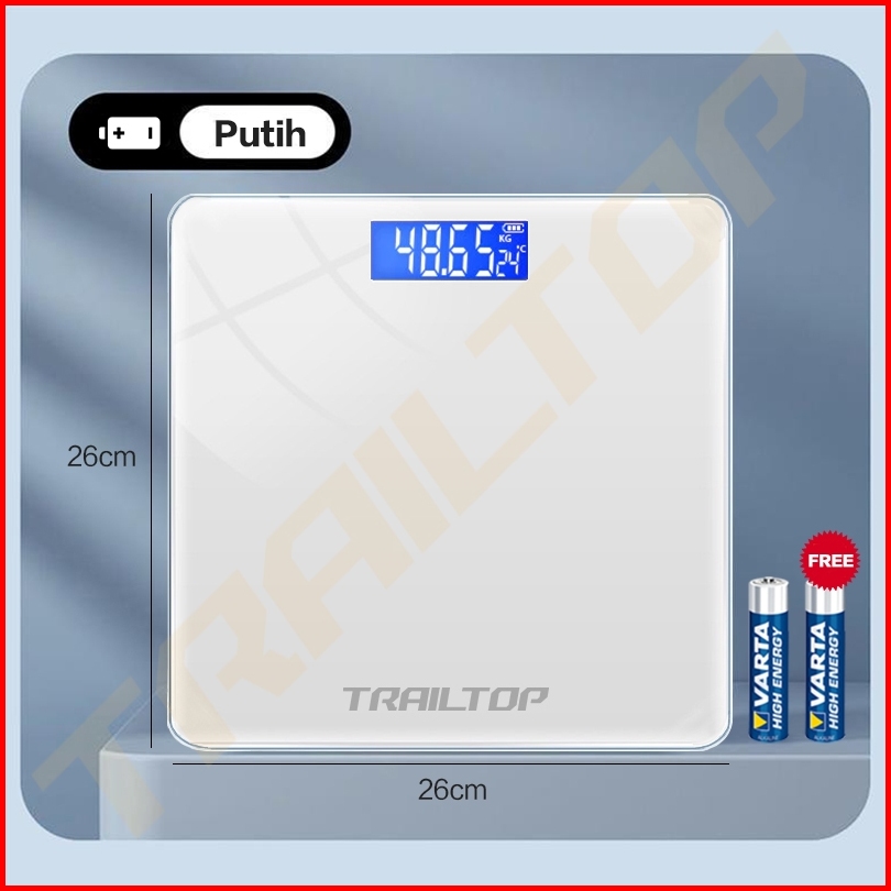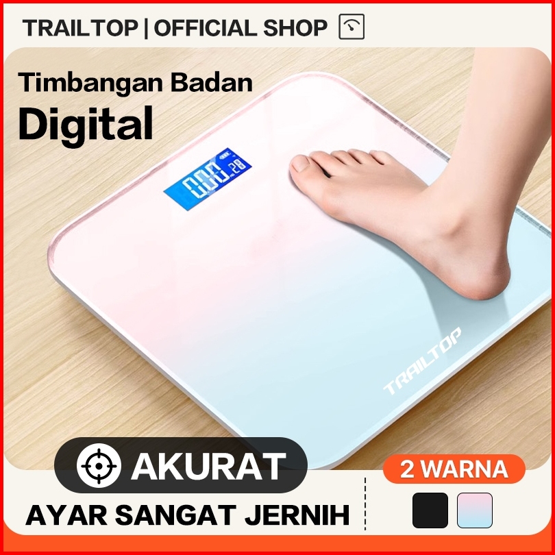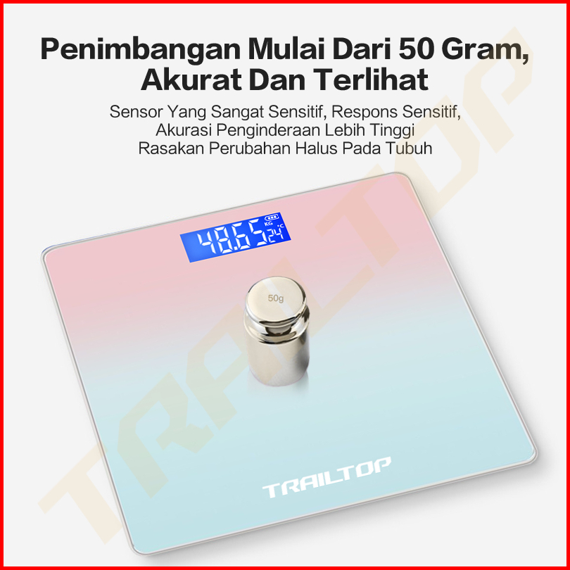 Trailtop Timbangan Badan Digital Lcd Scale Kaca Tempered Berat Max 180kg