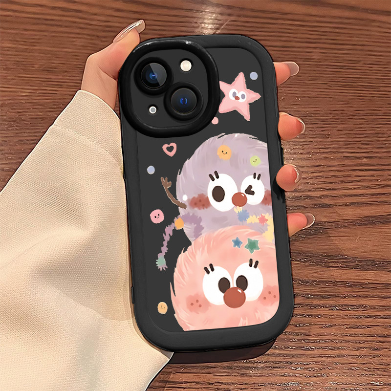 [Star] Case Silicon iPhone 15 Happy coal ball Casing Ponsel Cocok untuk iPhone 11 11PROMAXSoftcase Macaron 12 13 14 15 P