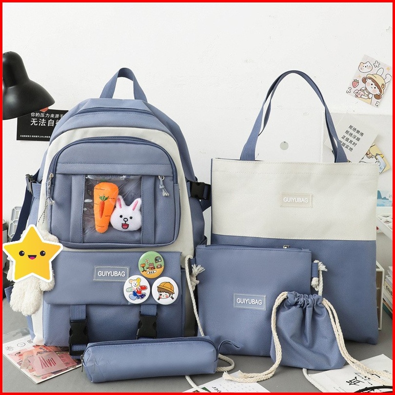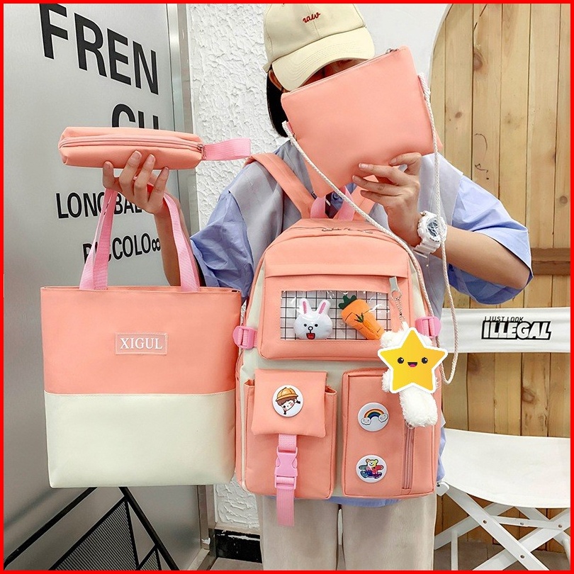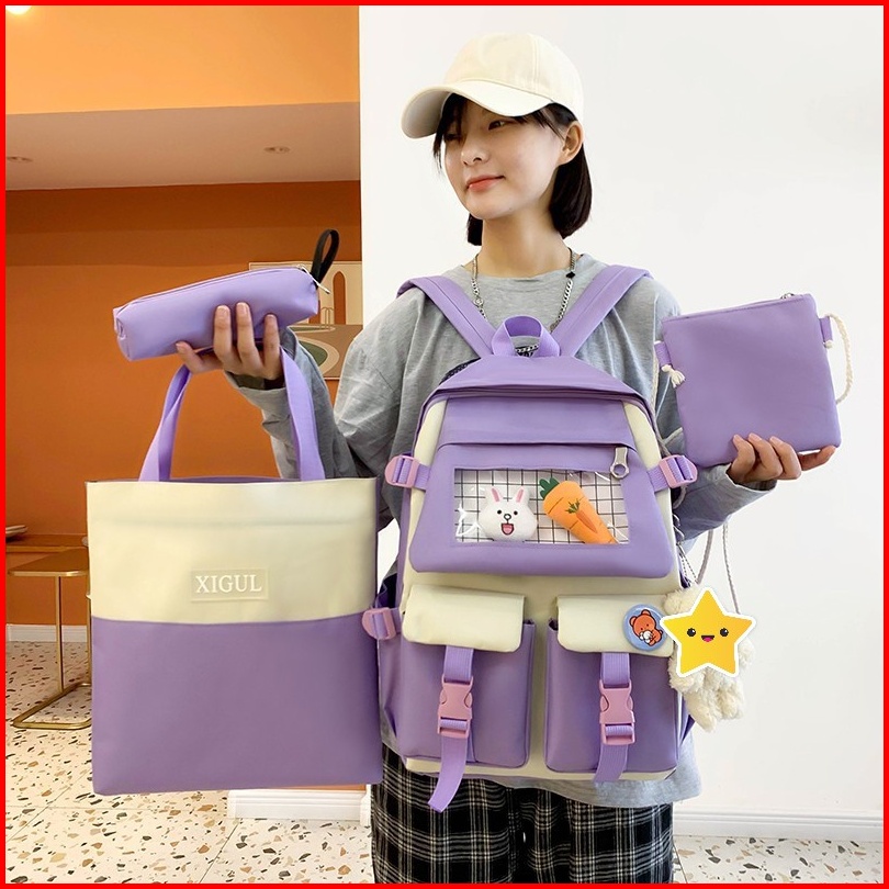 Tas Ransel Anak Sekolah Perempuan Set 4 In 1 Import Original C Fashion Korea