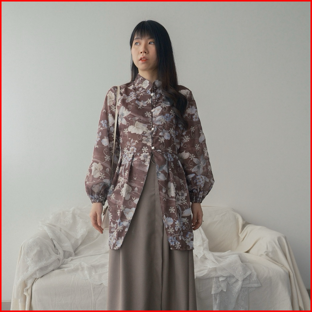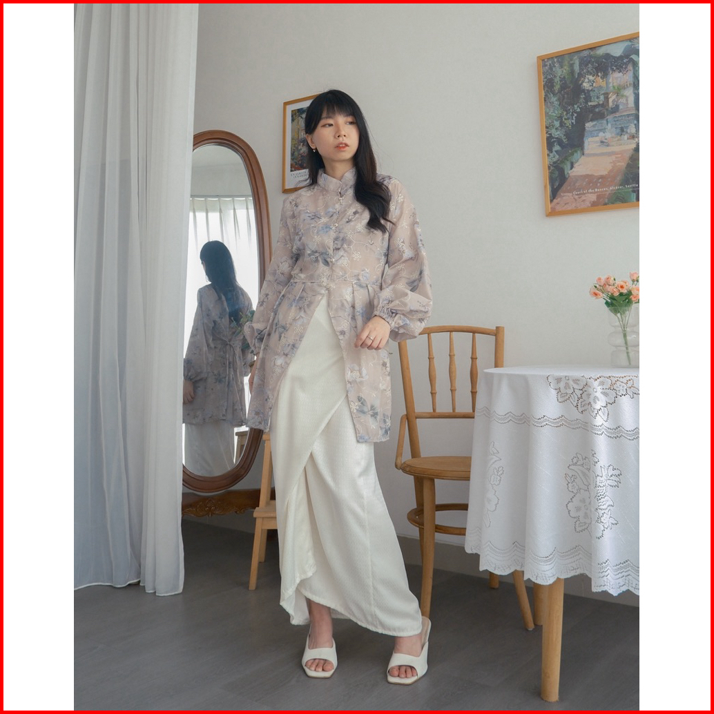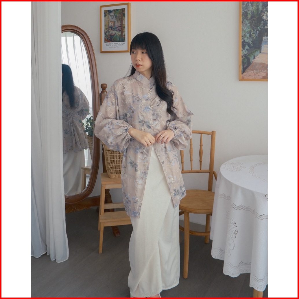 Kanon - Lara Kebaya Tunik Blouse - Tunik Kebaya Modern Motif Bordir Bunga