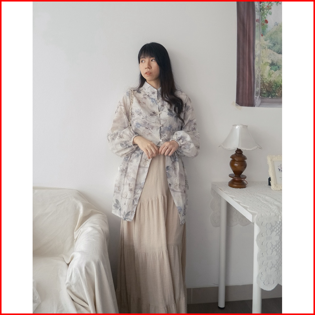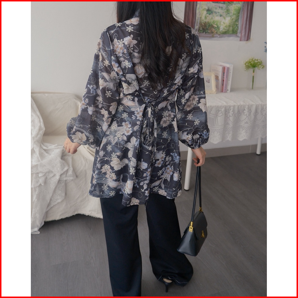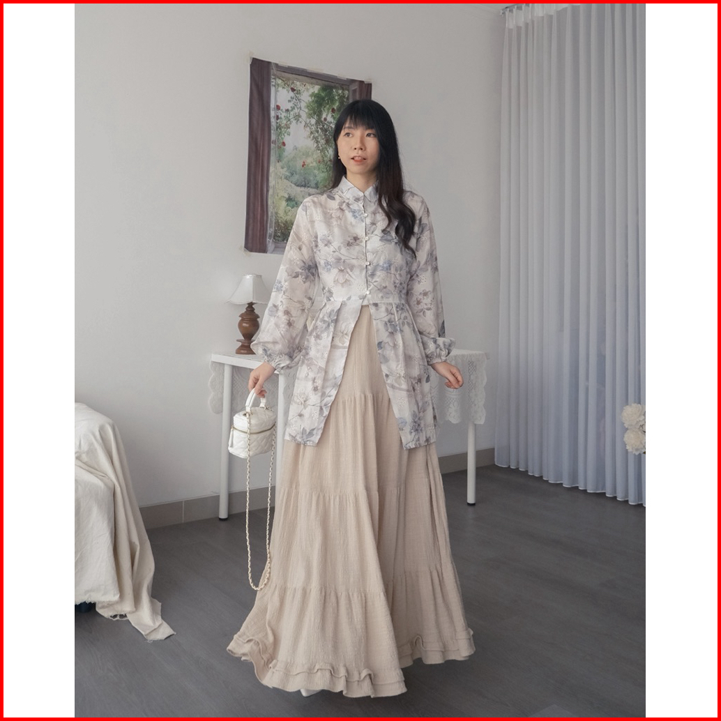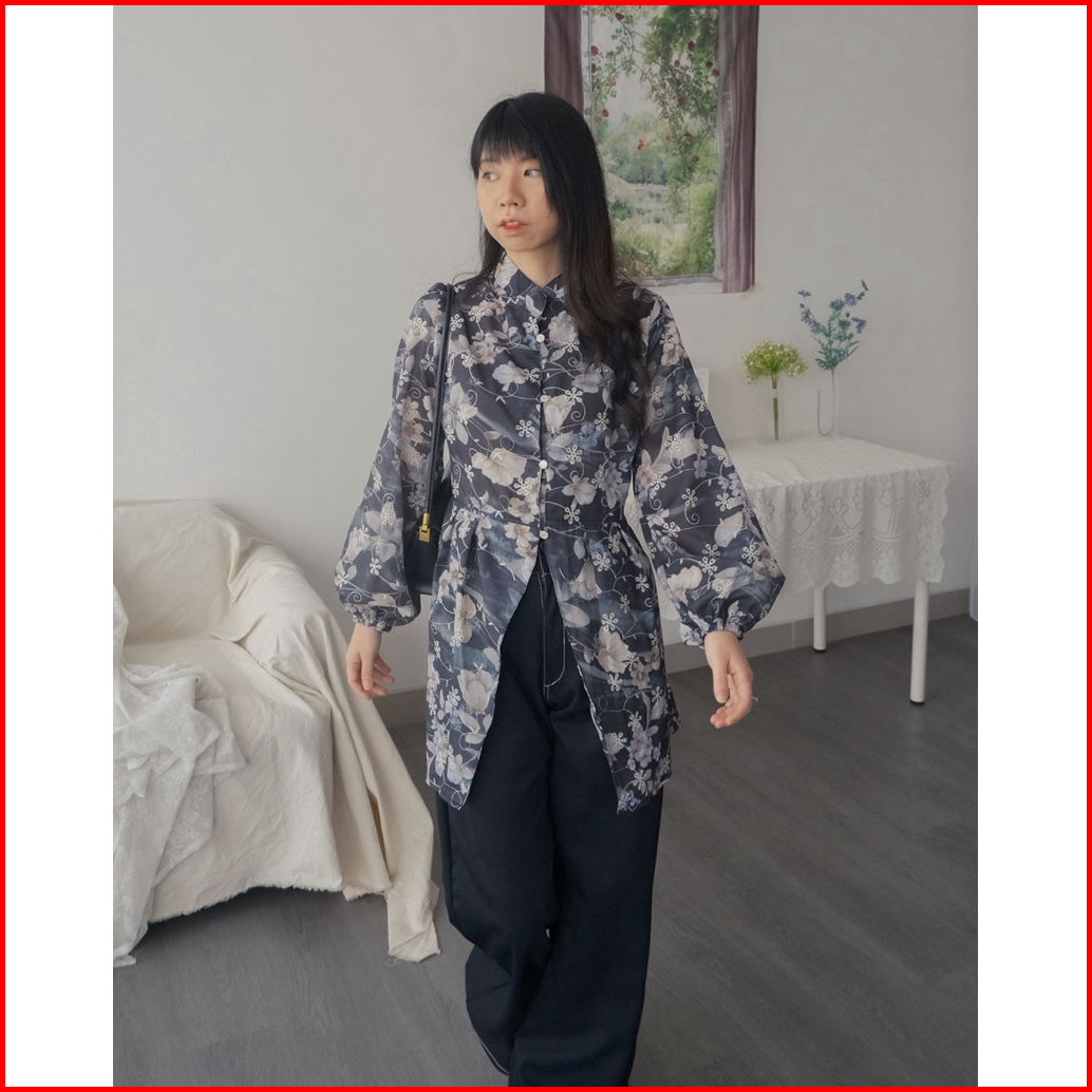 Kanon - Lara Kebaya Tunik Blouse - Tunik Kebaya Modern Motif Bordir Bunga