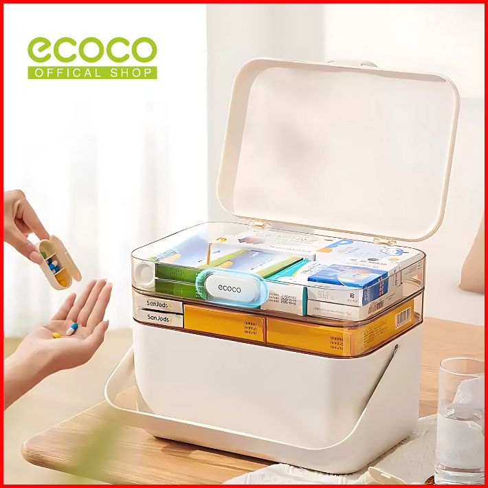Ecoco Medicine Storage - Kotak Obat Rumah Tangga Kotak Obat Keluarga Penyimpanan Klasifikasi Obat Multi-lapis Kapasitas