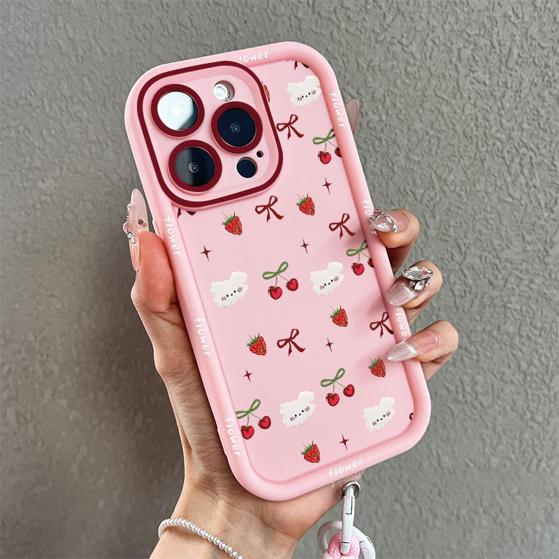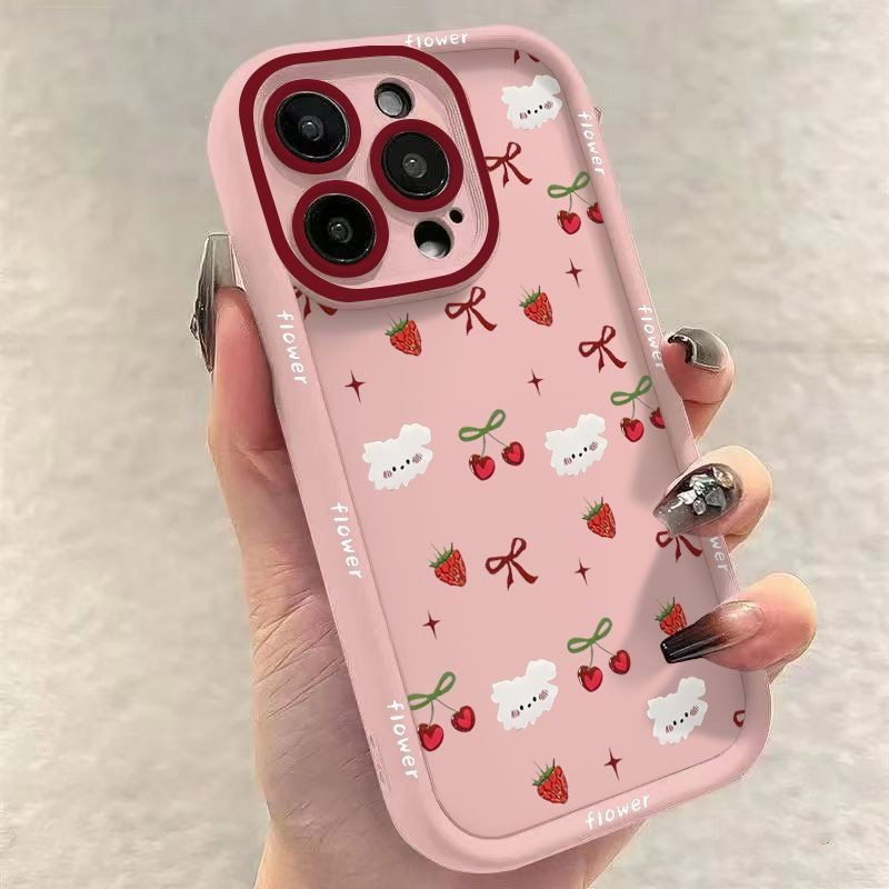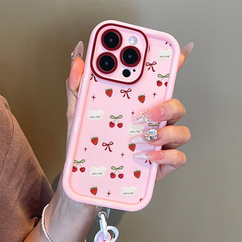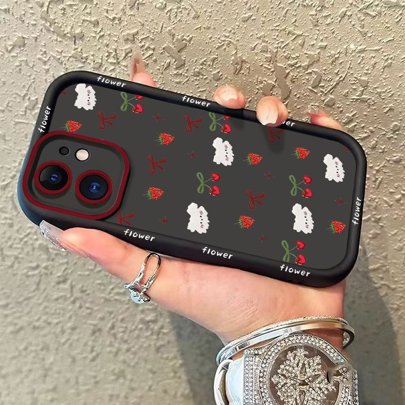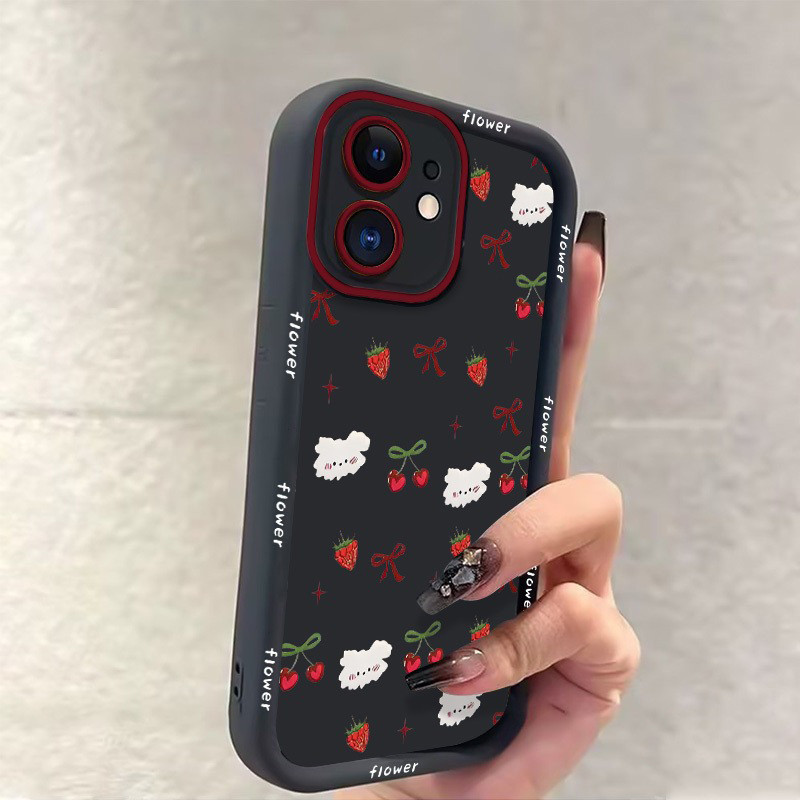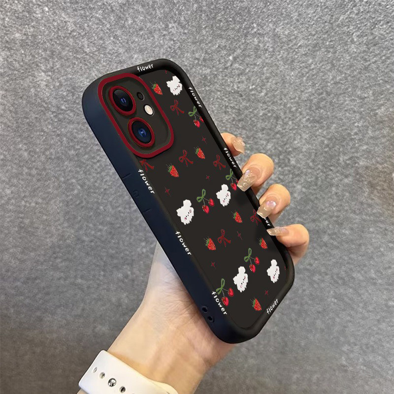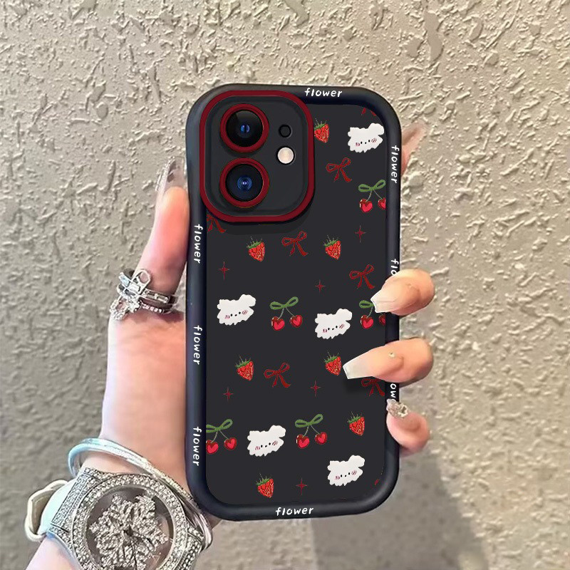 [Star] Untuk Case iPhone 11 Cangkang tepi hitam berBIAYA ceri stroberi 7plus 8plus x xr xs max 11pro 12 13 14 15 16 11pr