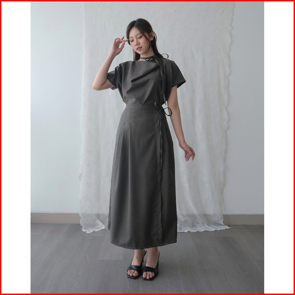 Kanon - Mutsuki Skirt - Rok Midi Premium Semiwool Aksen Pita Model Korean Look