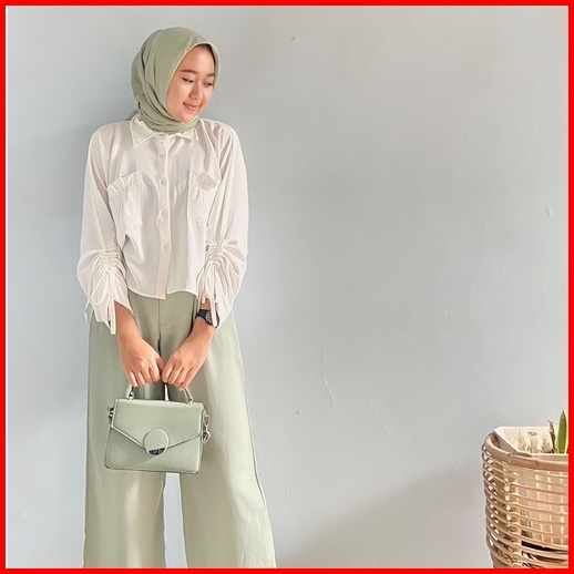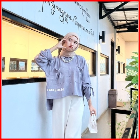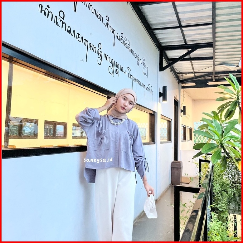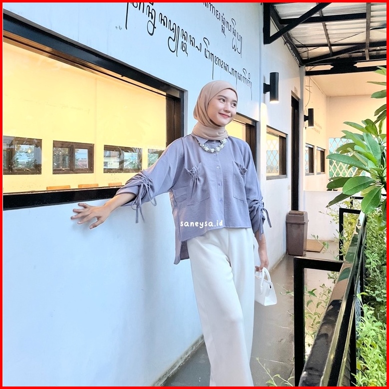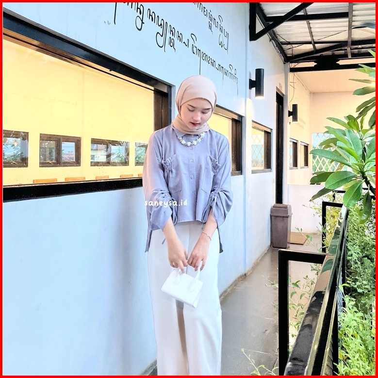 Karin Top Blouse Kemeja Serut Pocket - Seorina Shirt Blouse Serut - Blouse Crinkle Wanita Terin Blouse - Atasan Kekinian