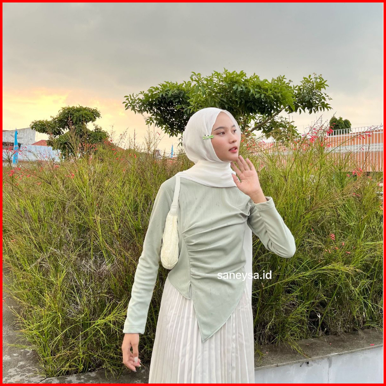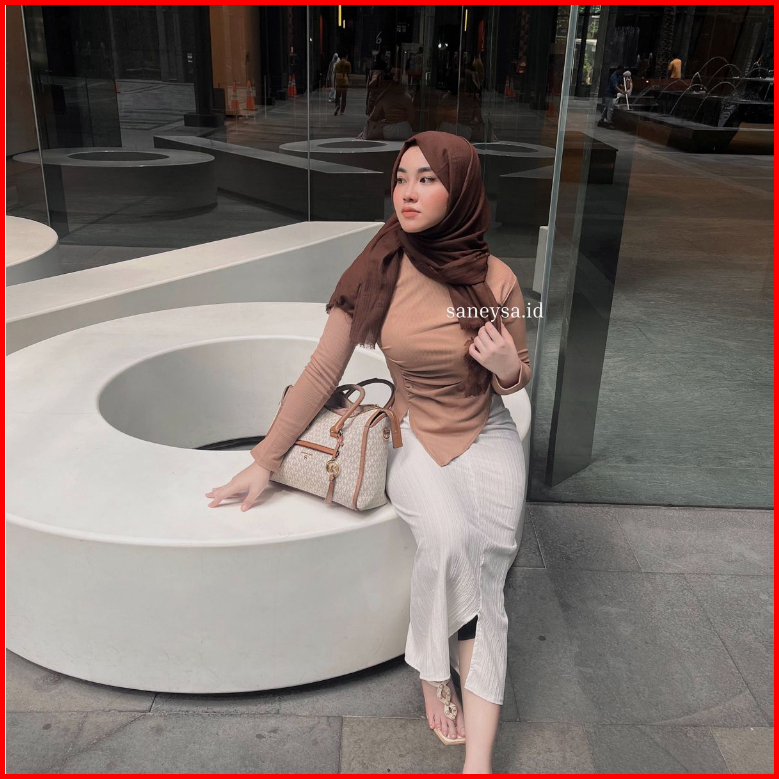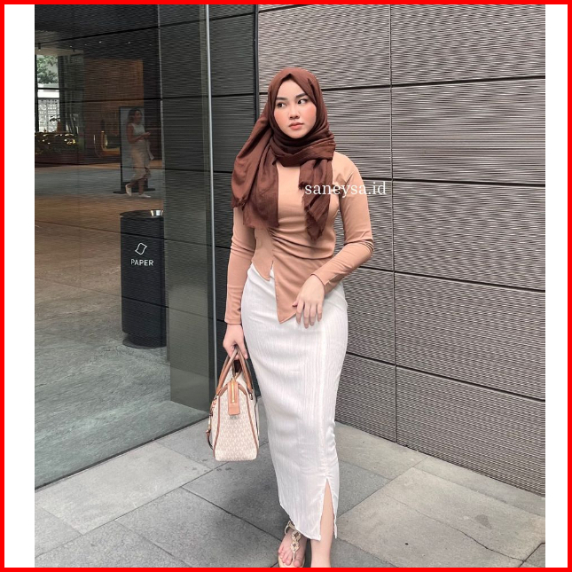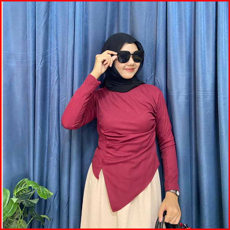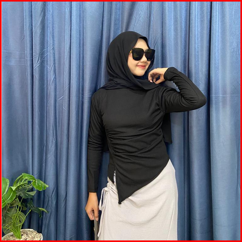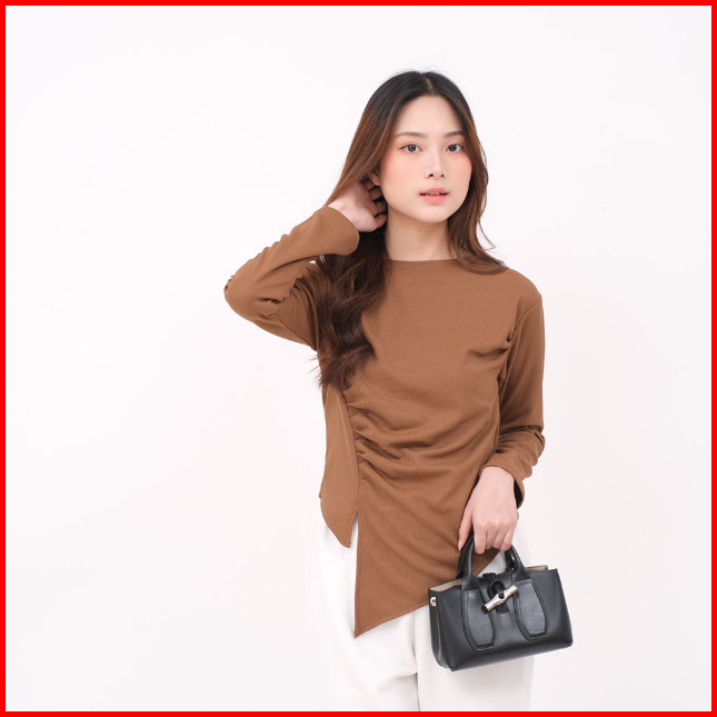 Valencia Ribbed Long Sleeve Top Knit - Atasan Wanita Knit - Crop Top Lengan Panjang Rajut Korea Style - Polo Rib Wanita