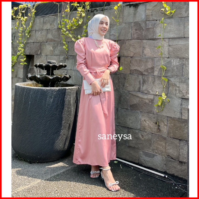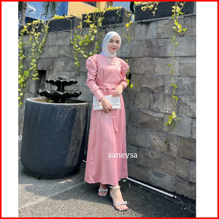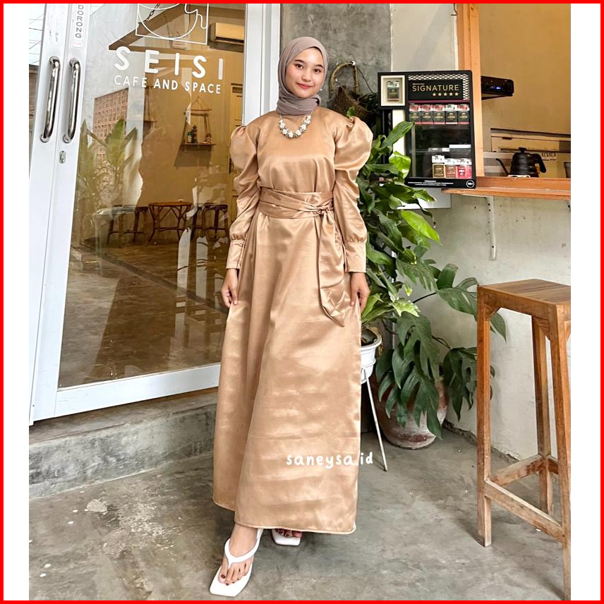 Arabella Silk Dress Satin - Dress Kondangan - Gamis Kondangan - Outfit Kondangan - Gamis Lebaran - Dress Korean Style -