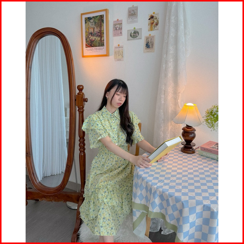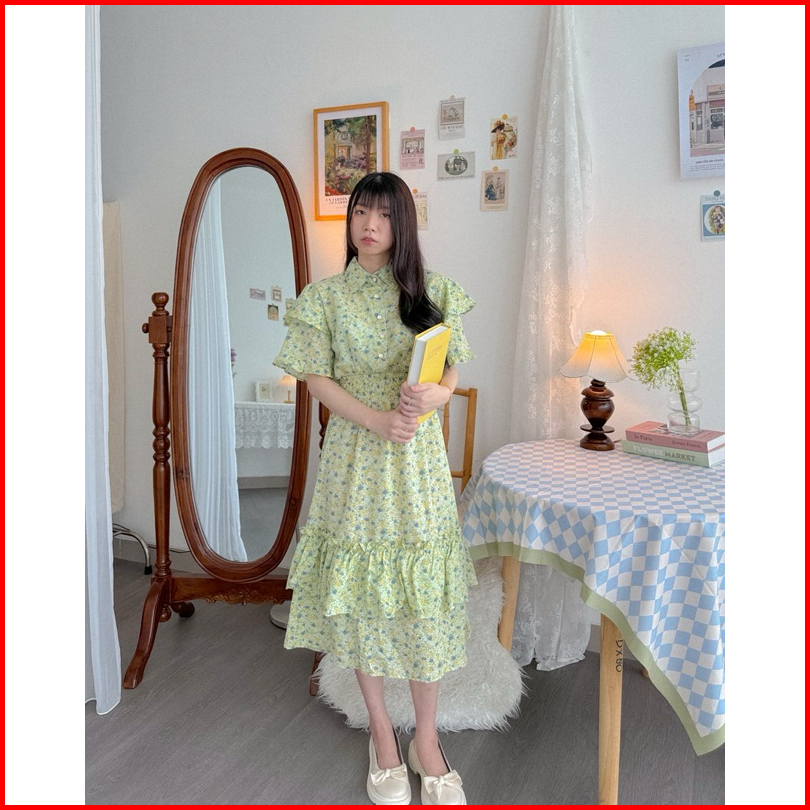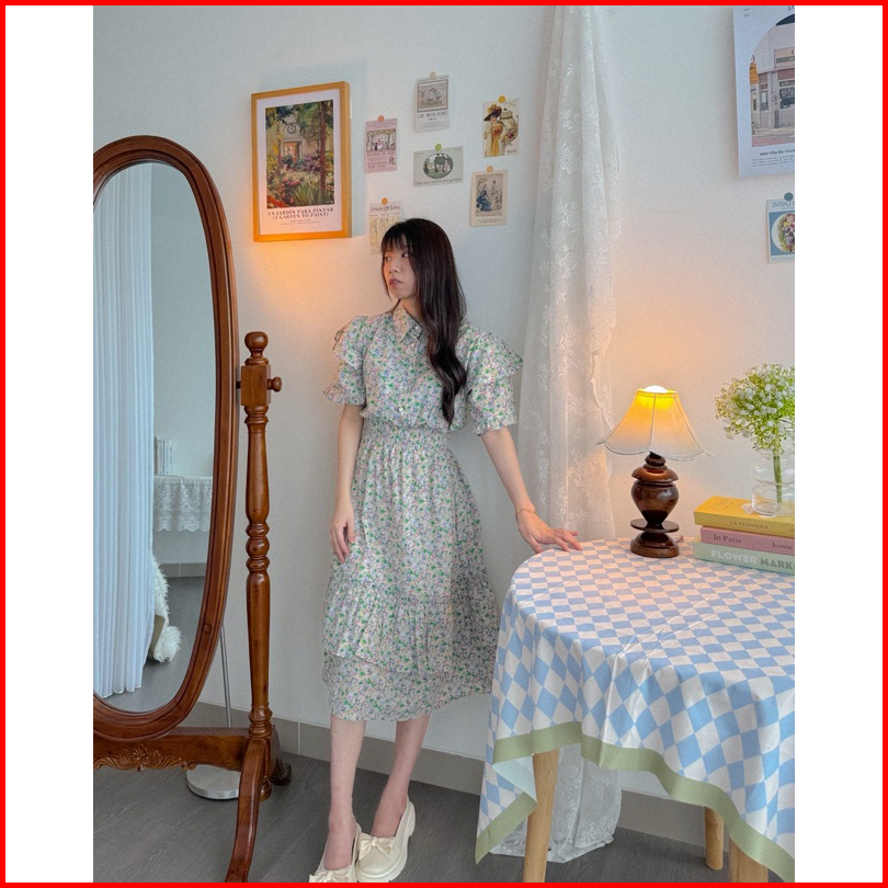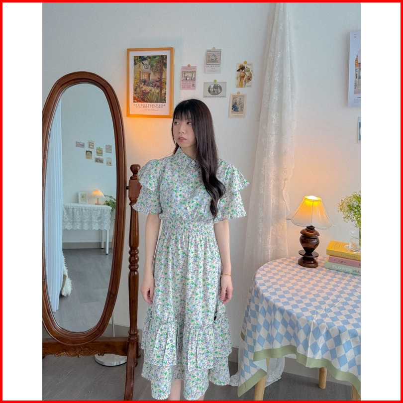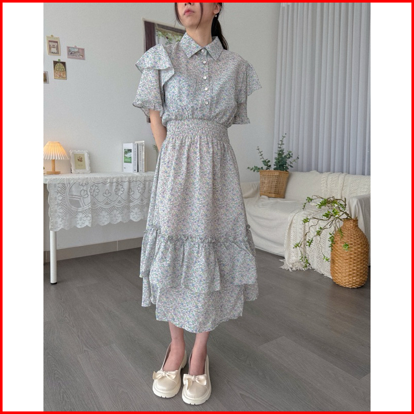 Kanon - Siren Crinkle Dress - Dress Pantai Musim Panas Midi Vintage Korean Look Motif Bunga