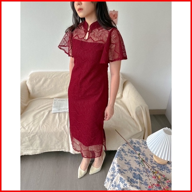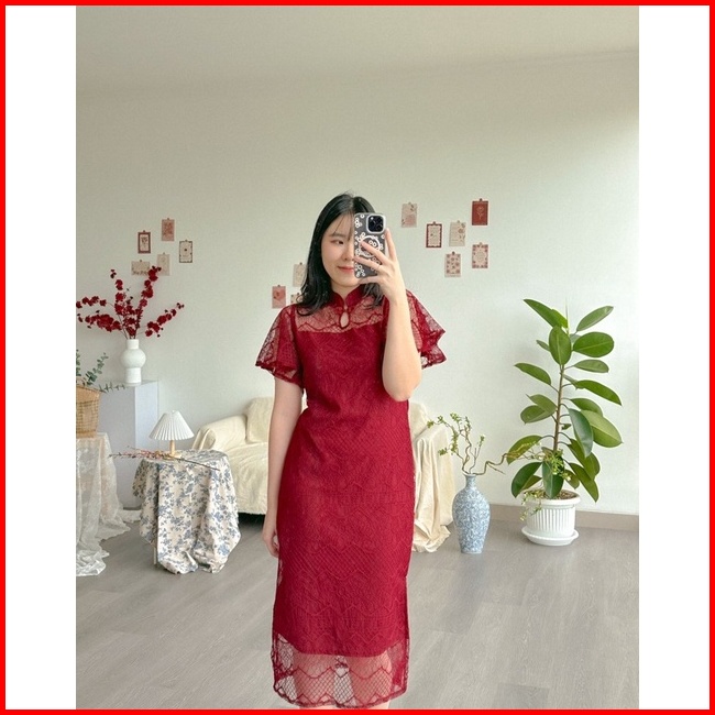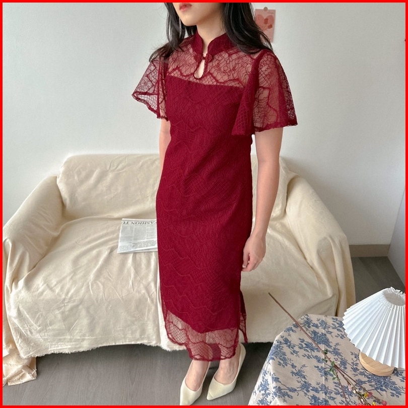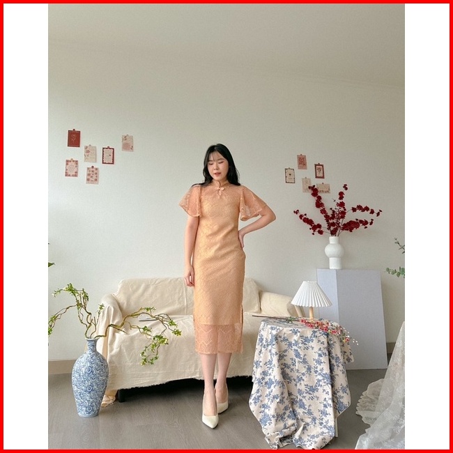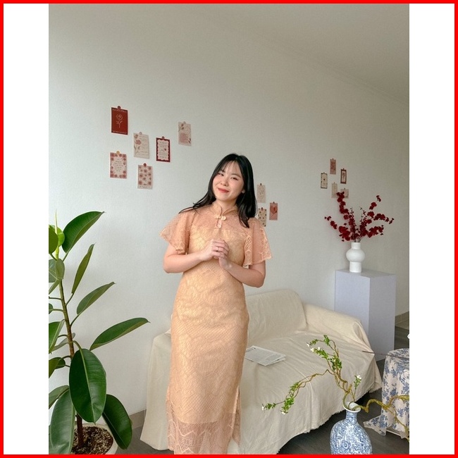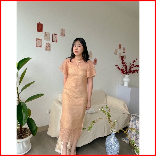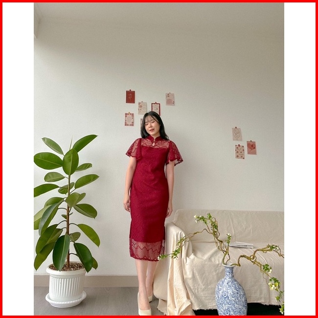 Kanon - Fang Qipao Dress - Dress Brukat Qipao Imlek Midi Length