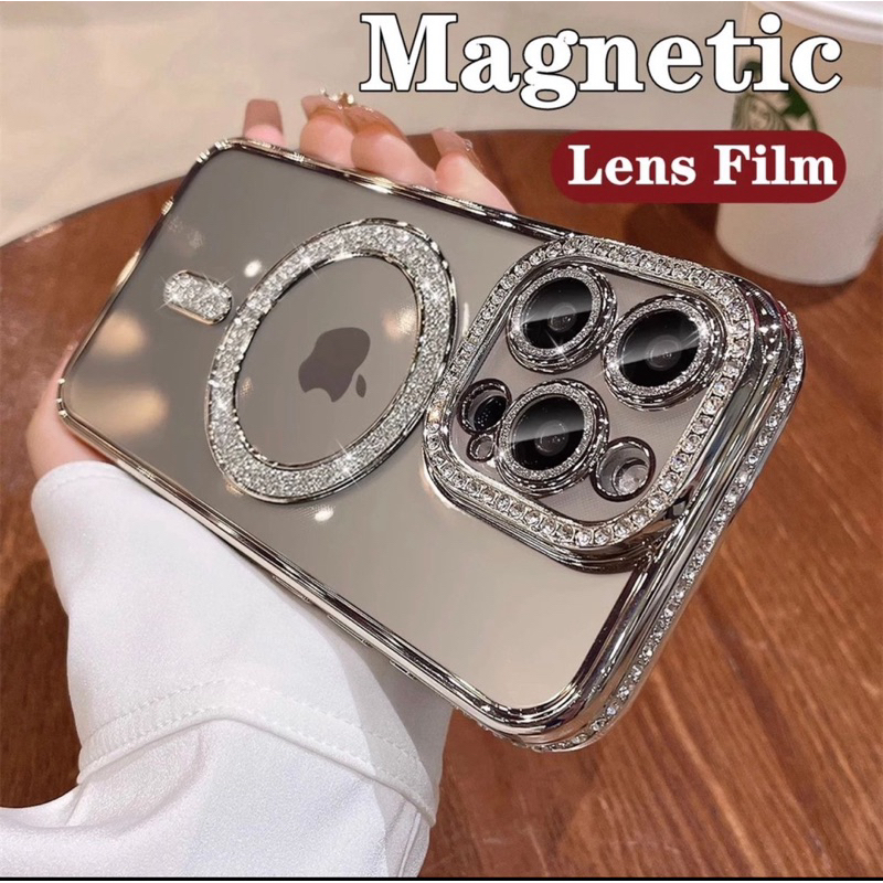 [Star] HOT !! Luxury Electroplating Crystal Diamond Magsafe Case IPHONE 11 12 13 14 15 16 PRO MAX Soft Case Premium Blin