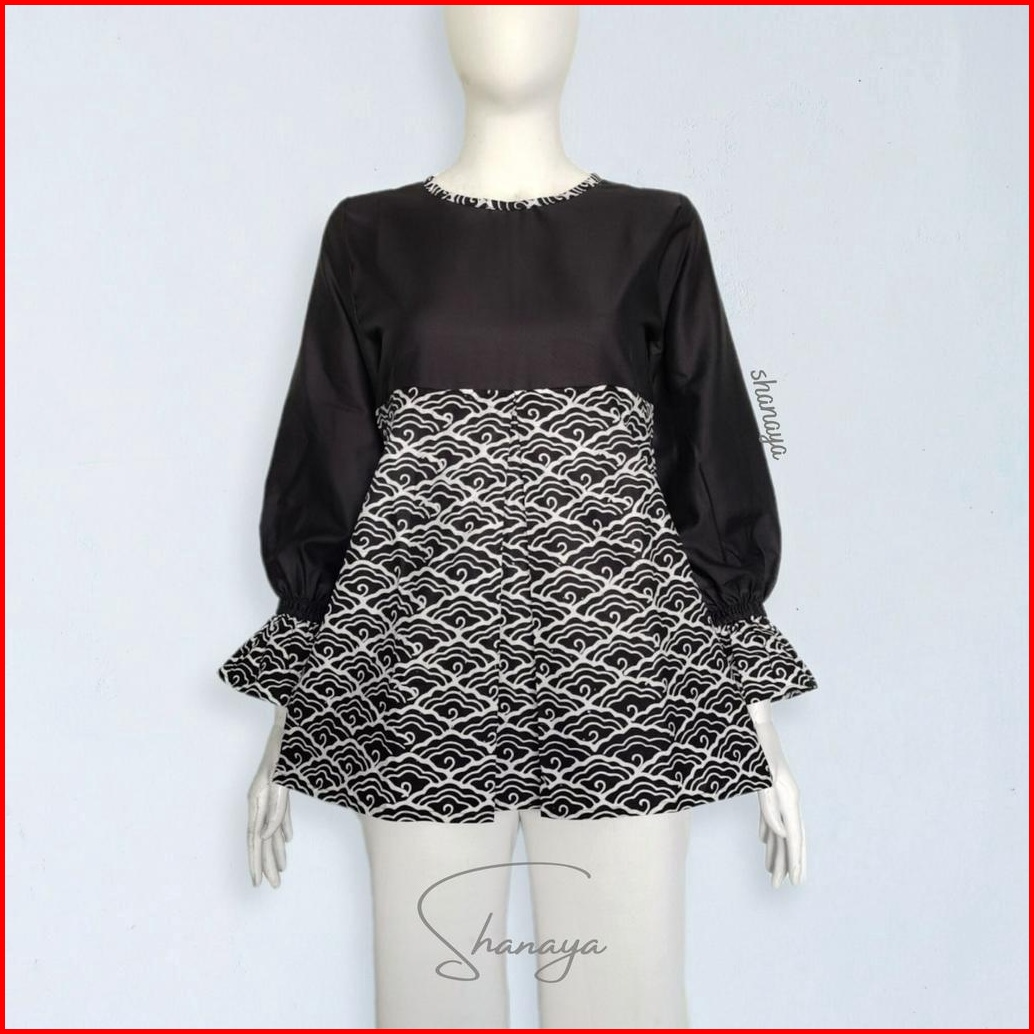Shanaya Baju Batik Solo Blus Maroon Kawung Batik Cap Garutan Kombinasi Katun Premium Batik Modern Cantik Elegan Untuk Ke