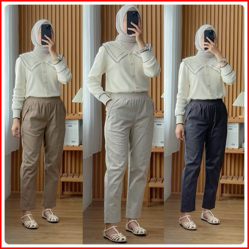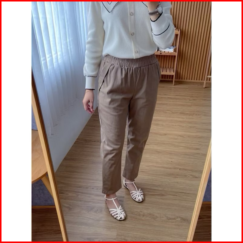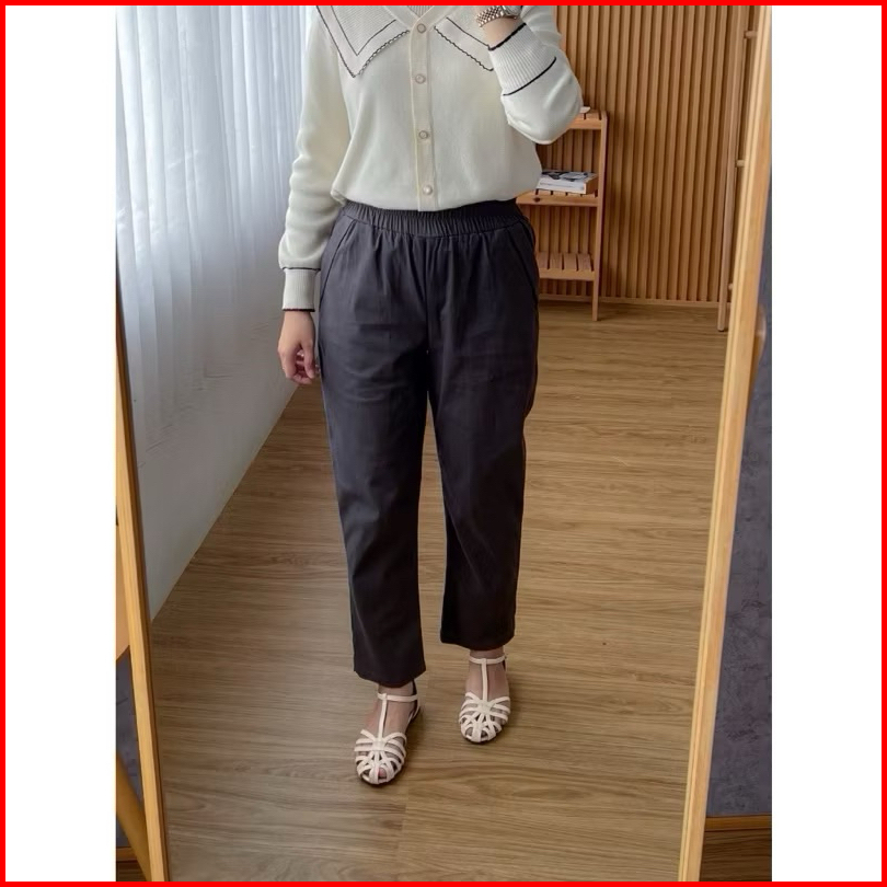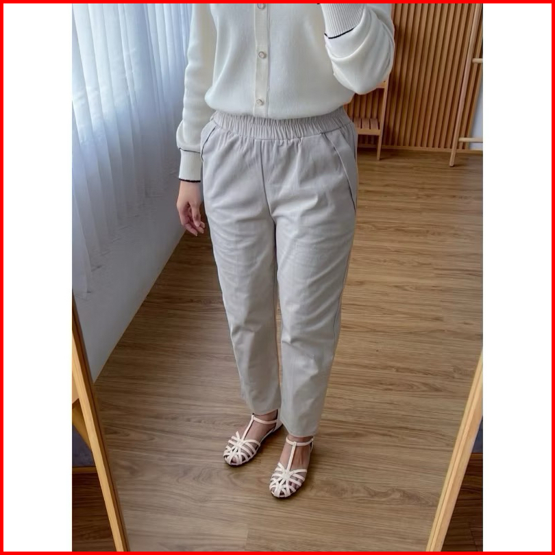 Kino Basic Pants Celana Baggy Pants Wanita Full Karet Celana Katun Celana Chino Stretch
