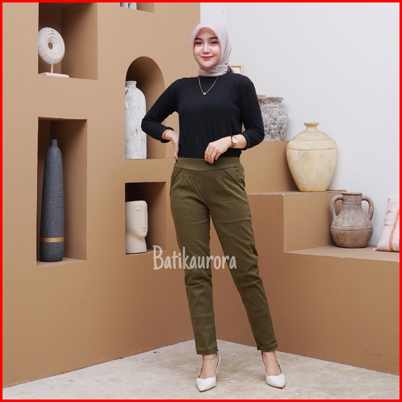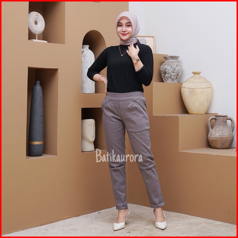 Celana Katun Twill Wanita-celana Kerja Murah-celana Kerja Big Size Ukuran All Size Qeela Pants