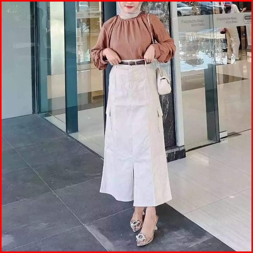 Kenzy Cargo Skirt Rok Korean Style Katun Twill