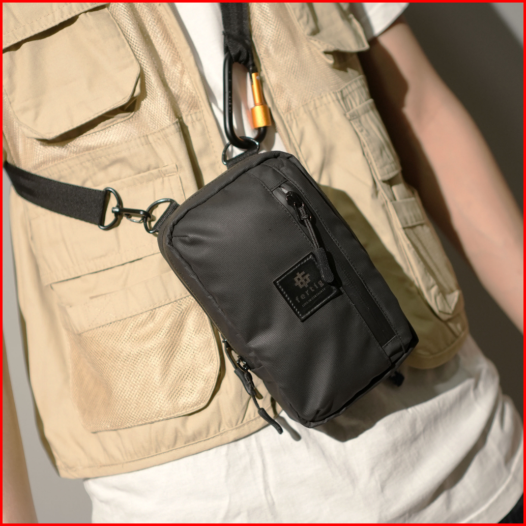 Fertig - Idlyss Black - Tas Handphone Hitam - Tas Slingbag Pria Dengan Carabiner - Muat Untuk Handphone 6 4