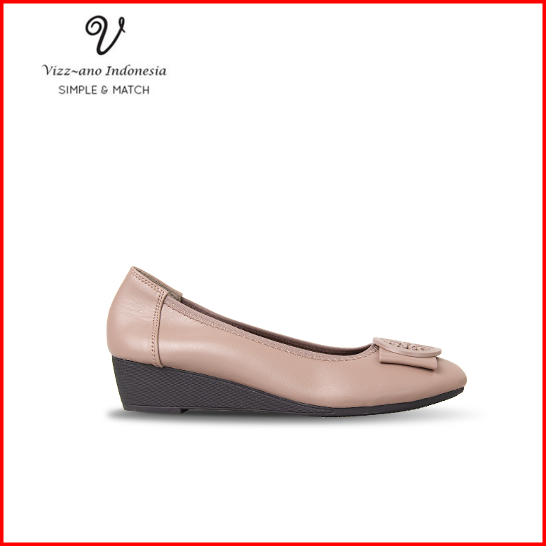 Vizzano Shoes Sepatu Wedges Flat Kerja Flatshoes Empuk Hak 5 Cm Wanita Design Jovelyn Beige