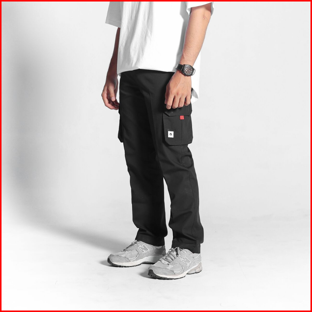 Troveast Celana Pdl Cargo Panjang Pria Regular Fit Ripstop Black