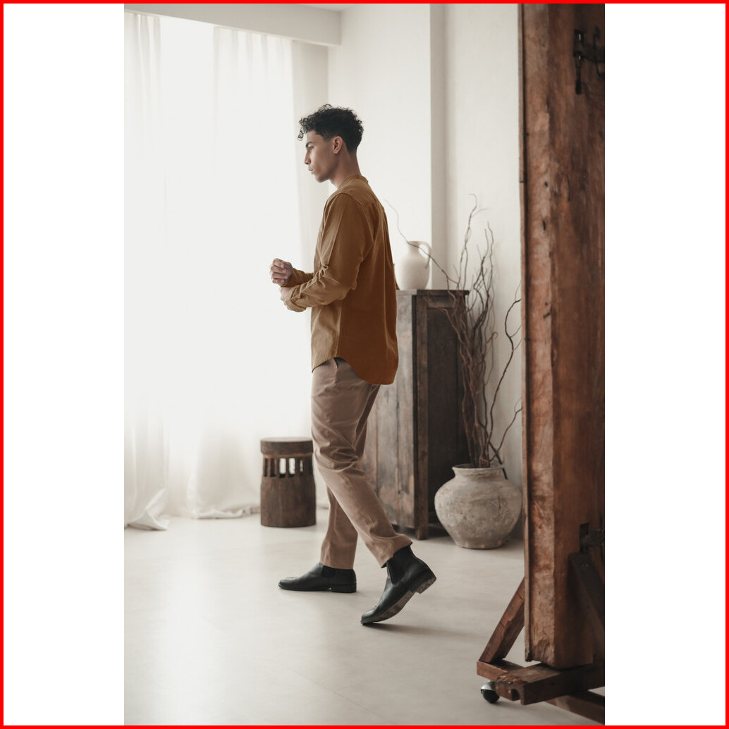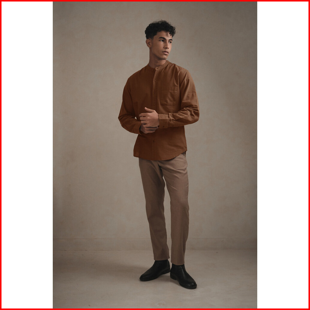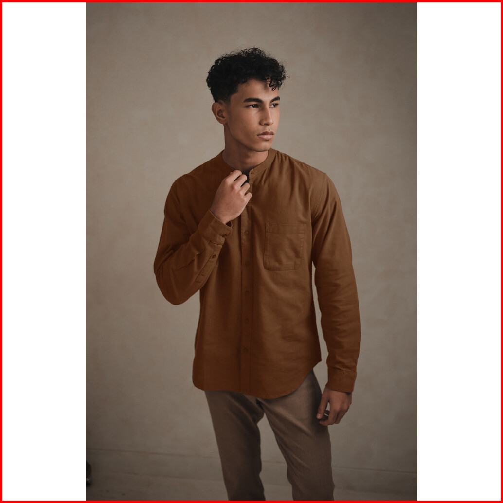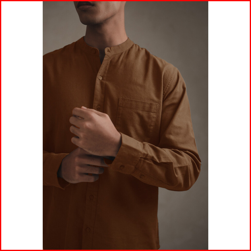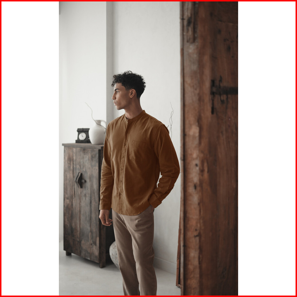 Larusso Khair Collection - Kemeja Koko Rami Basic Polos Pria Lengan Panjang - Brown