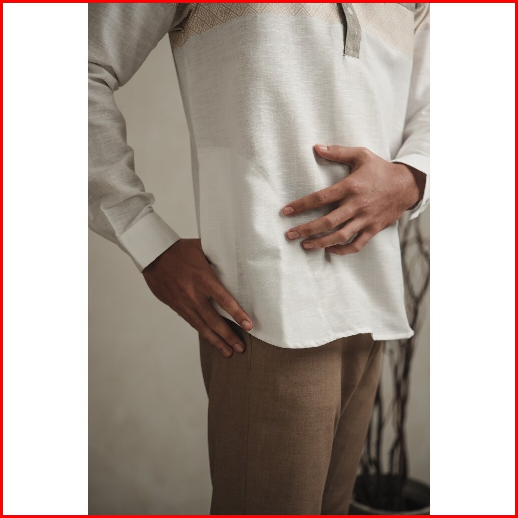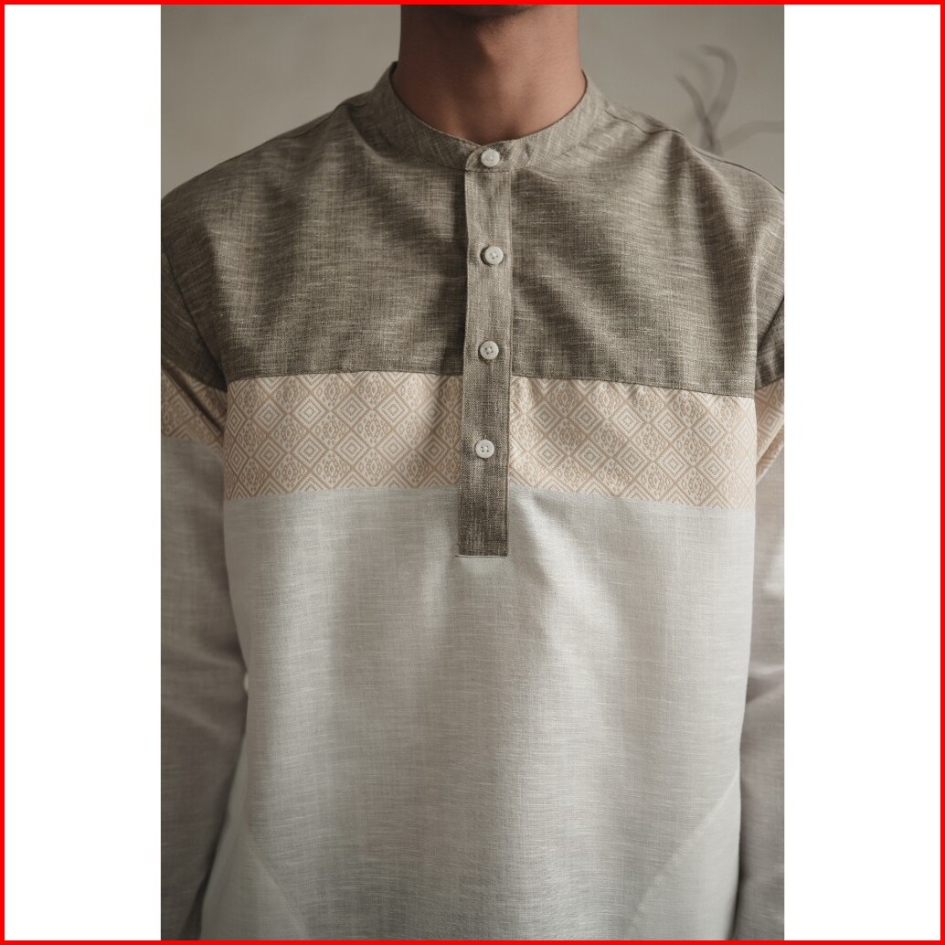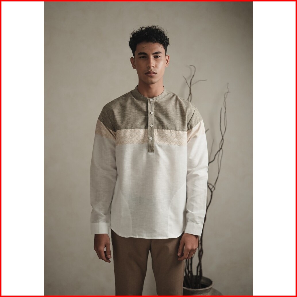 Larusso Khair Collection - Kemeja Koko Bordir Pria Bertekstur Lengan Panjang - Tareeq