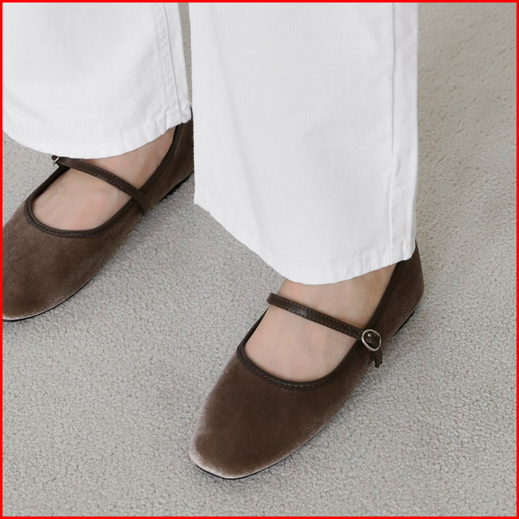 Sappun Khaila Velvet Mary Jane Flats 1cm - Flat Shoes Wanita