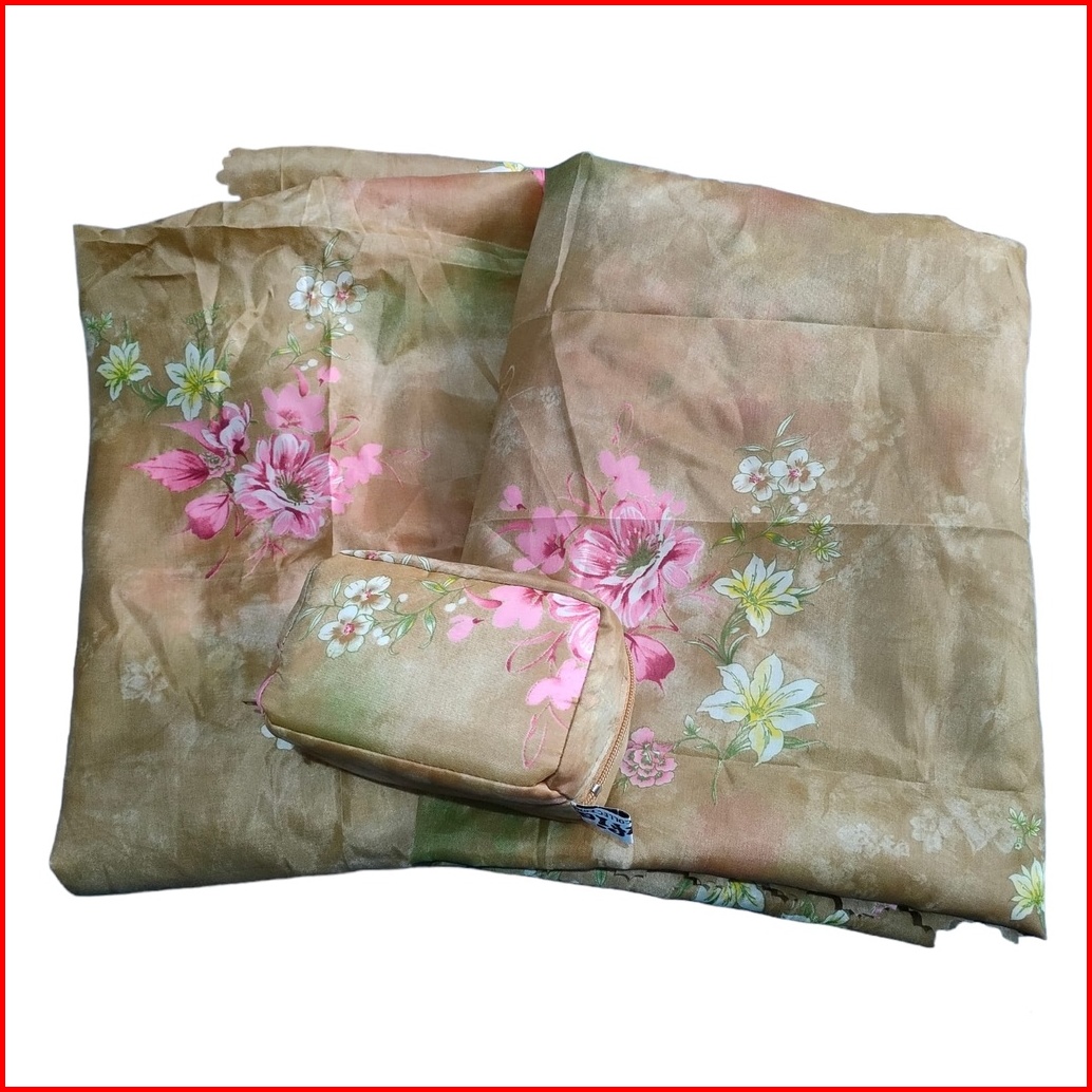 Mukena Travel Motif Premium - Botanical Allura Atas Bawah Dengan Kepala