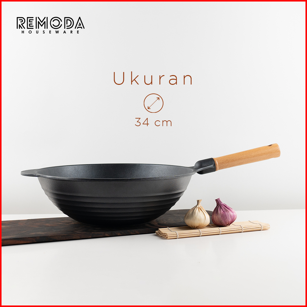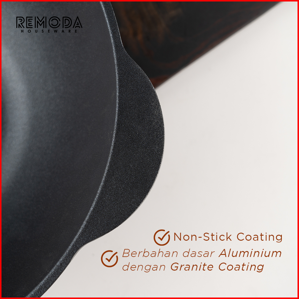 Remoda Wok Pan Induksi 34cm Non-stick Gagang Kayu Golden Creek Series