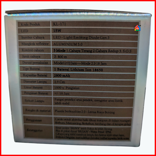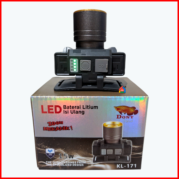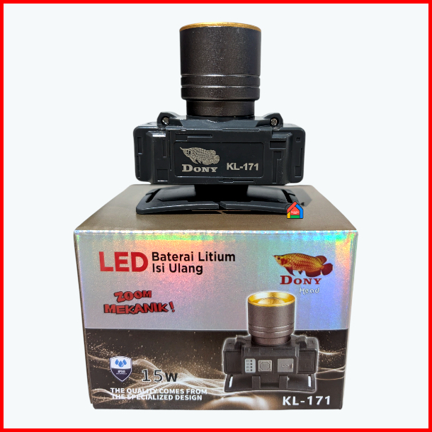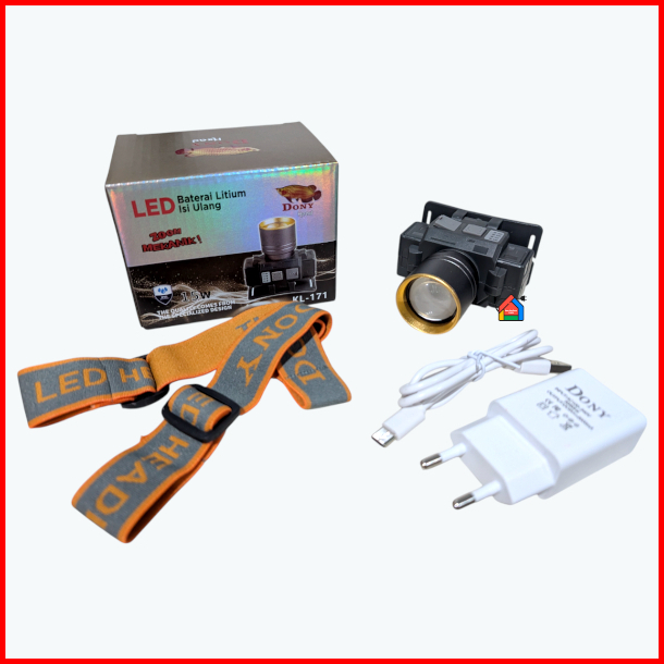Senter Kepala Dony Kl-171 Zoom Mekanik 15 Watt Dony Senter Kepala Kl171 Zoom Cahaya Fokus Dan Melebar Cahaya Putih Kunin