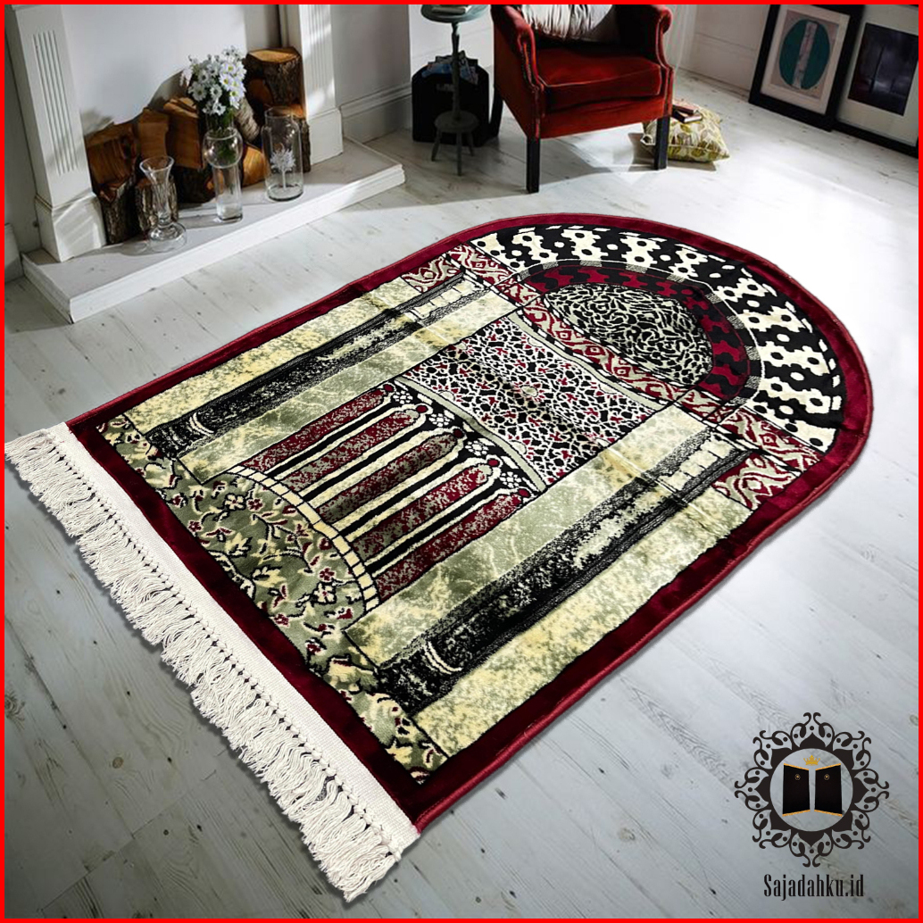 Sajadah Turki Tebal Cutting Kubah Bahan Beludru Semi Carpet Ukuran Dewasa