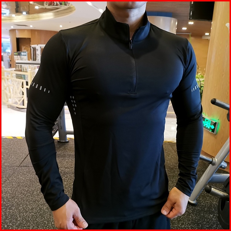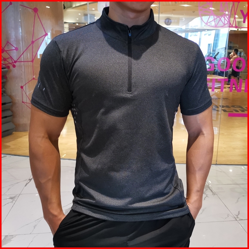 Kamb Kaos Pria Hitam Atasan Kerah Ritsleting T Shirt