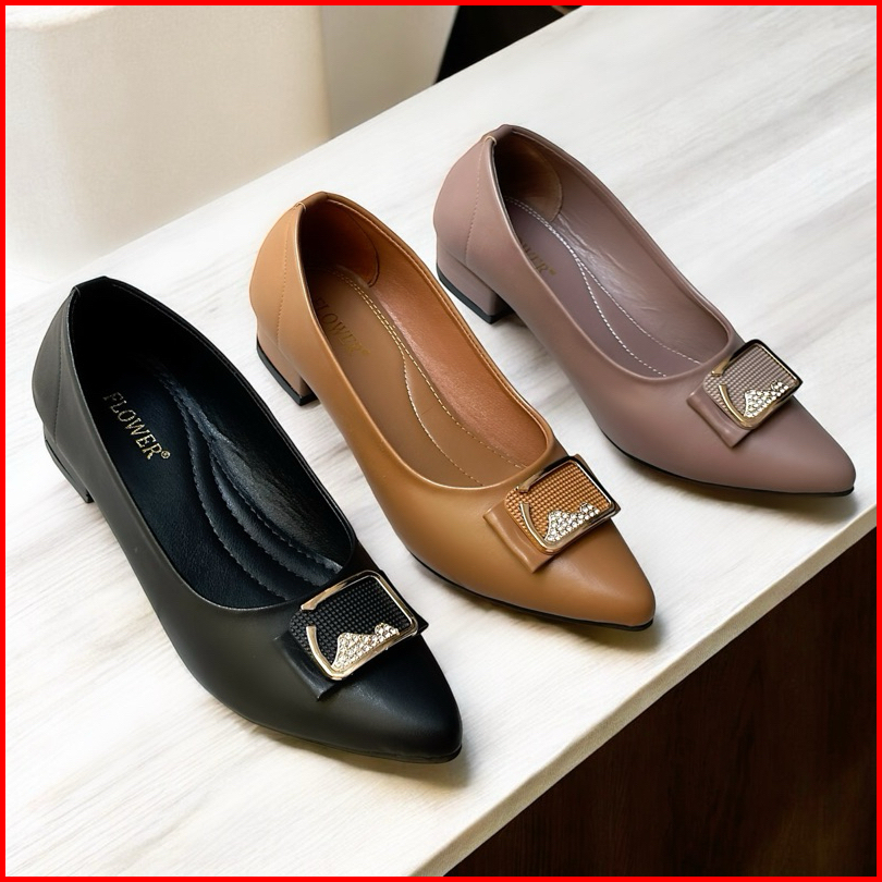 Basic Elegant Fantofel Wanita Mhd04 3cm - Sepatu Ballerina - Sepatu Kerja Wanita - Sepatu Fantopel Wanita -sepatu Flat W