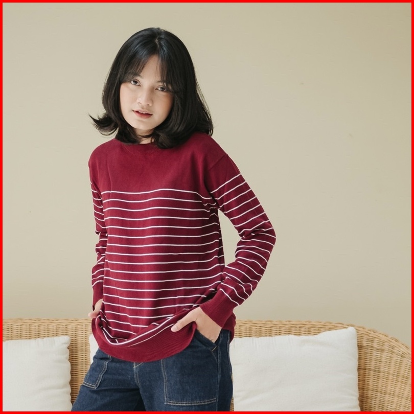 Sugi Label - Gea Top Atasan Rajut Katun Adem Stripe
